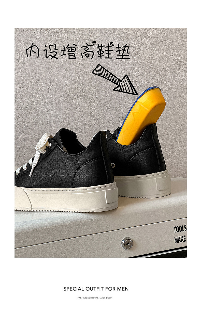 큰 발가락 신발 남자 2025 봄 새로운 두꺼운 밑창 증가 검은 통근 매일 캐주얼 신발 보이지 않는 증가 신발스토어 가기