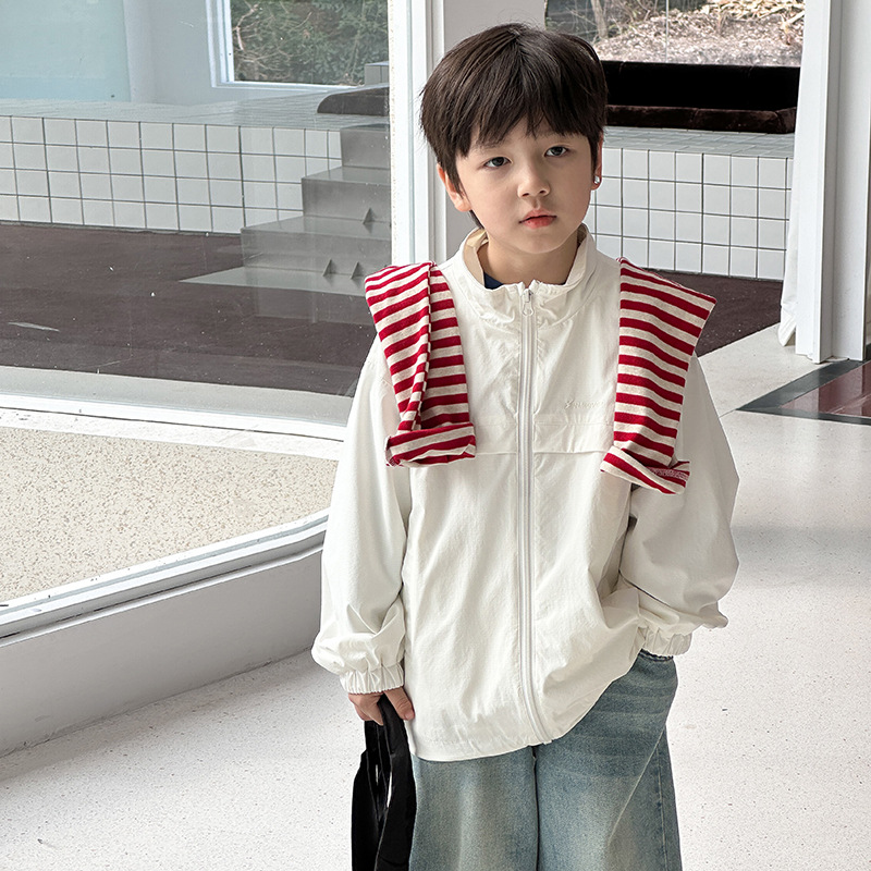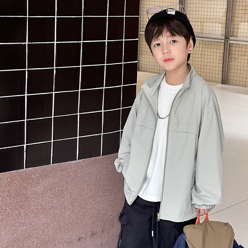 【클리어런스 세일】봄가을 아동용 멋진 자수 무지 재킷 남아 여아용 메쉬 안감 가디건 자외선 차단 의류스토어 가기