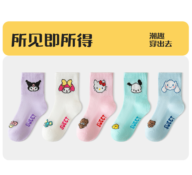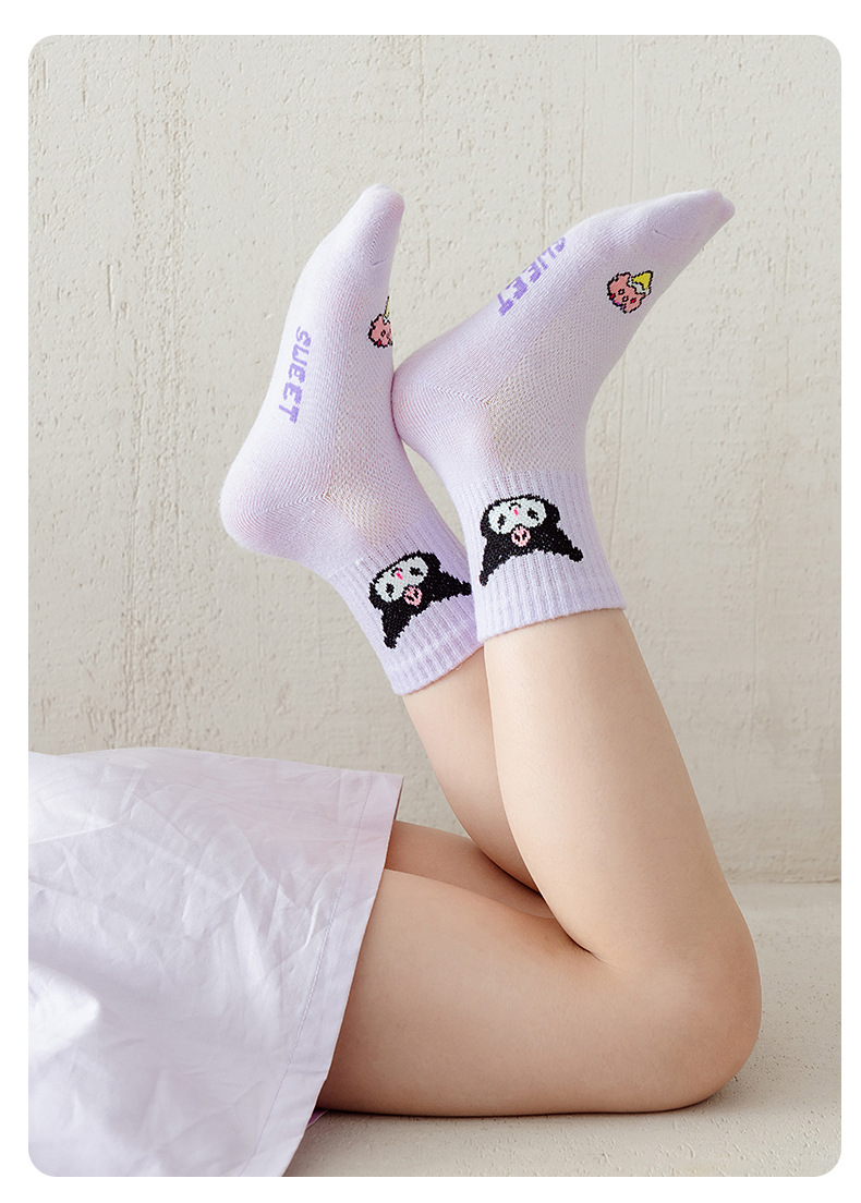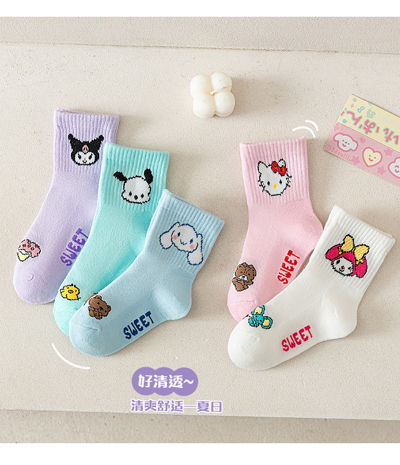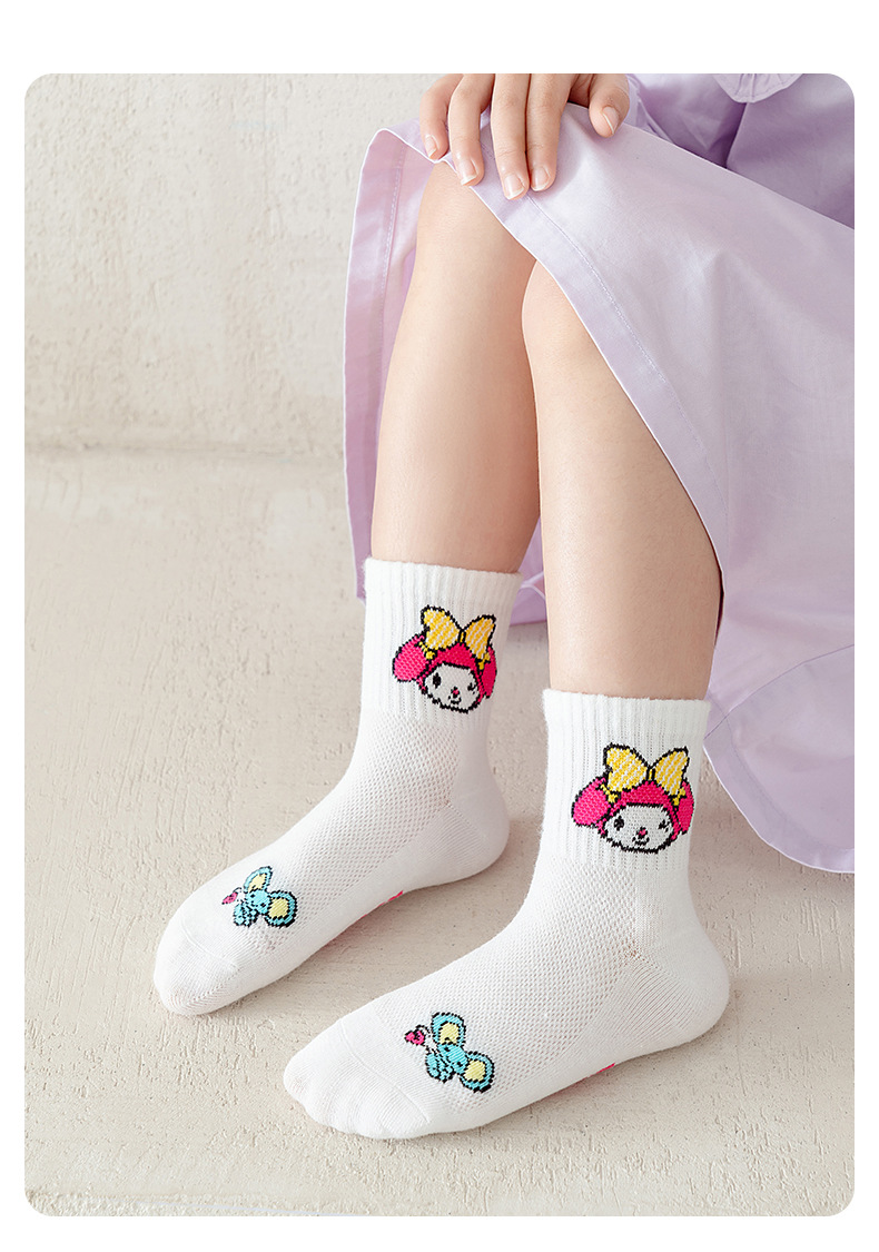 소녀 양말 25 봄과 여름 한국 스타일 메쉬 만화 산리오 어린이 중간 크기 양말 귀여운 달콤한 여성 면 양말
