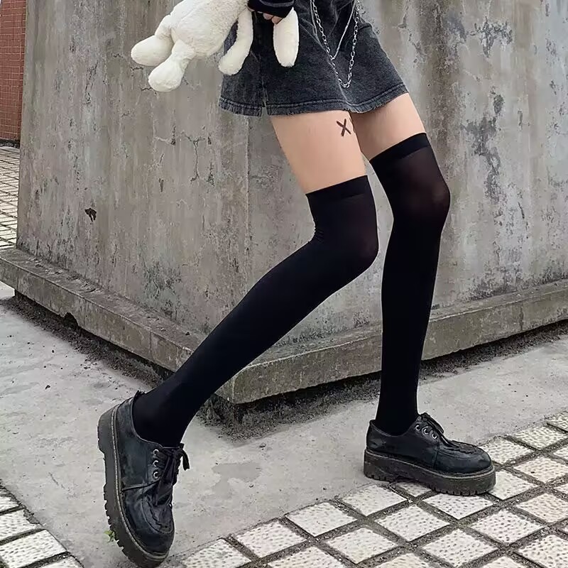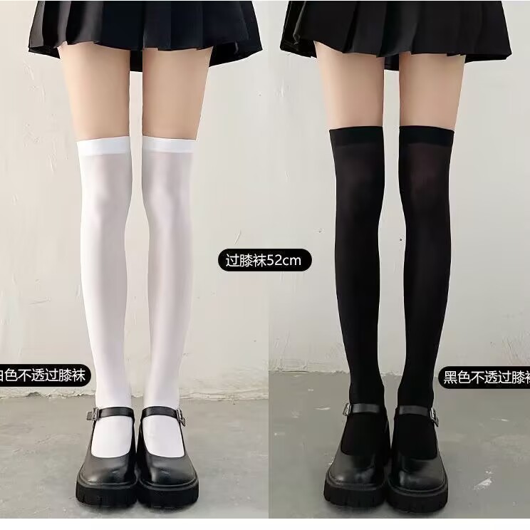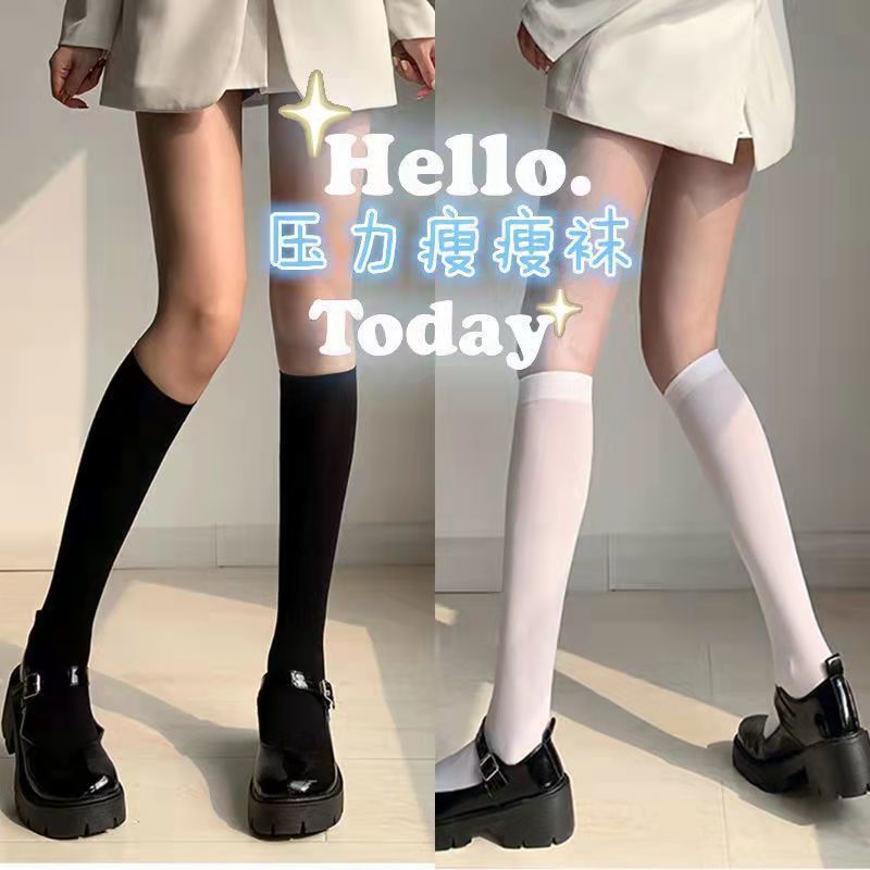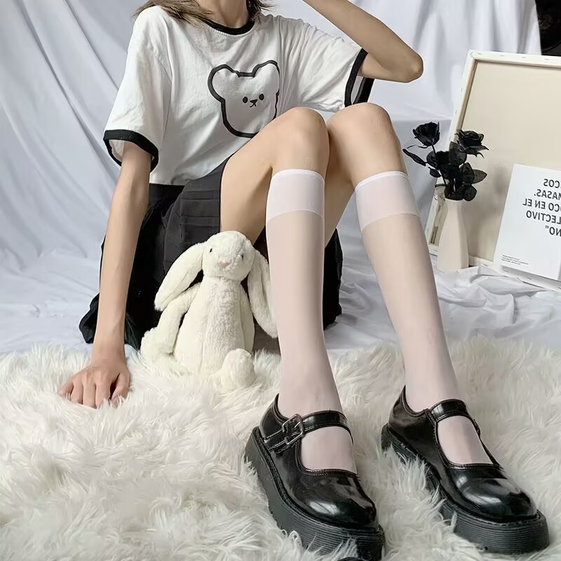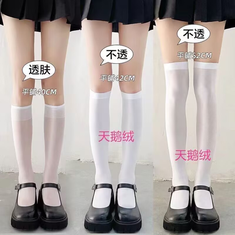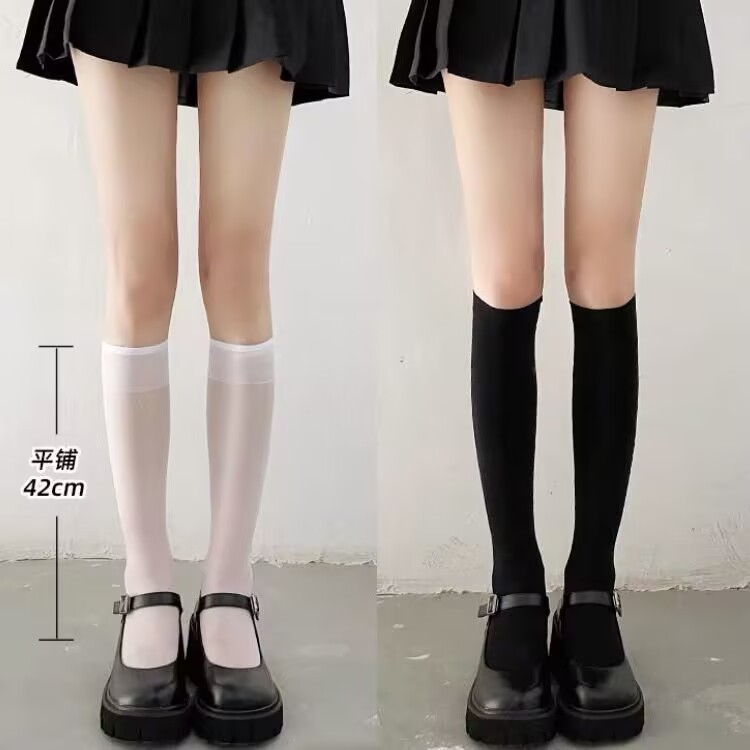 높은 Jk 스타킹 흰색 실크 무릎 양말 여름 양말 여성의 중간 길이 얇은 양말 봄과 가을 화이트 송아지 스타킹스토어 가기