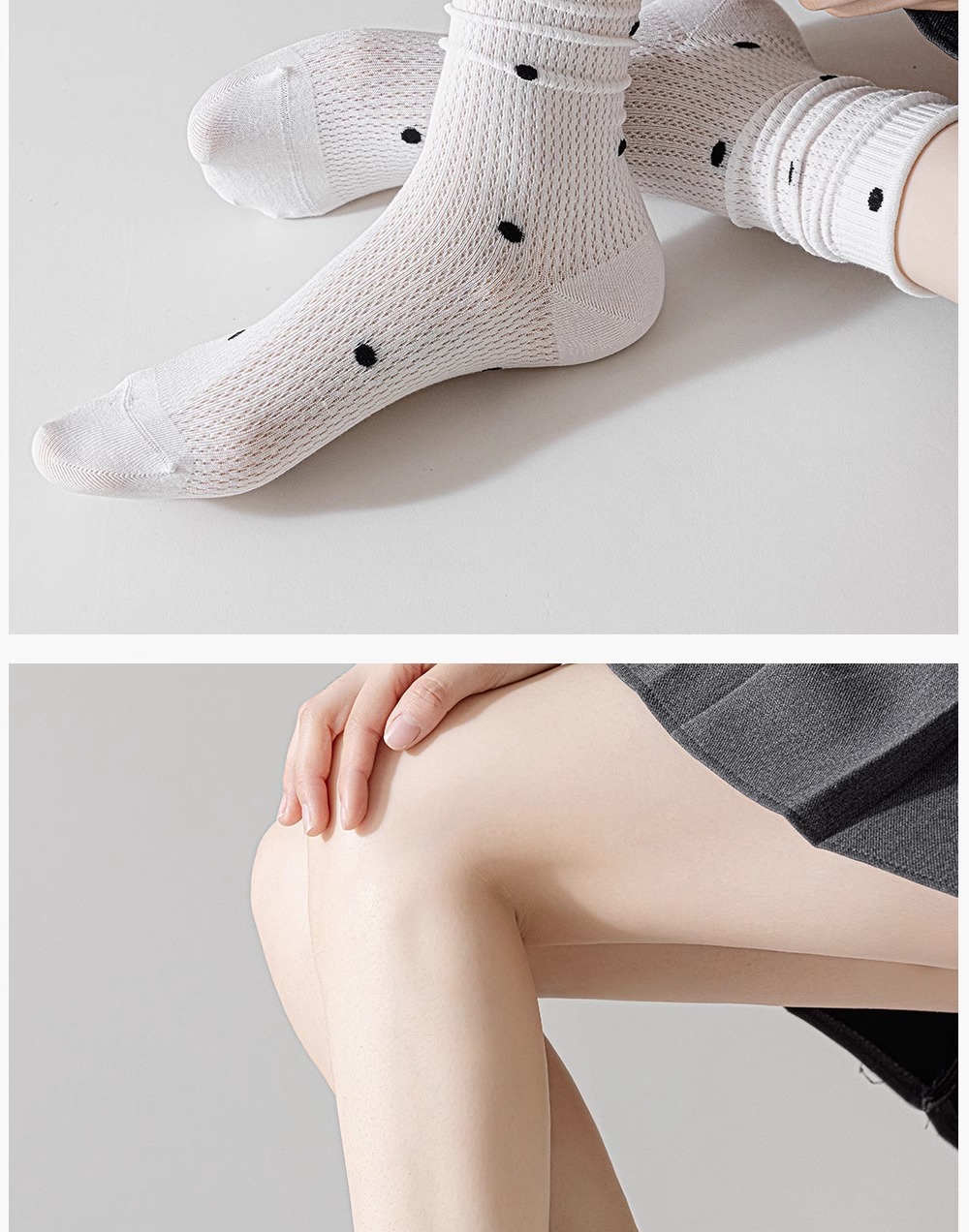 회색 폴로 도트 양말 여성의 봄과 가을 중간 길이 양말 얇은 순수 면화 양말 2025 봄과 여름 메쉬 통기성 스타킹스토어 가기