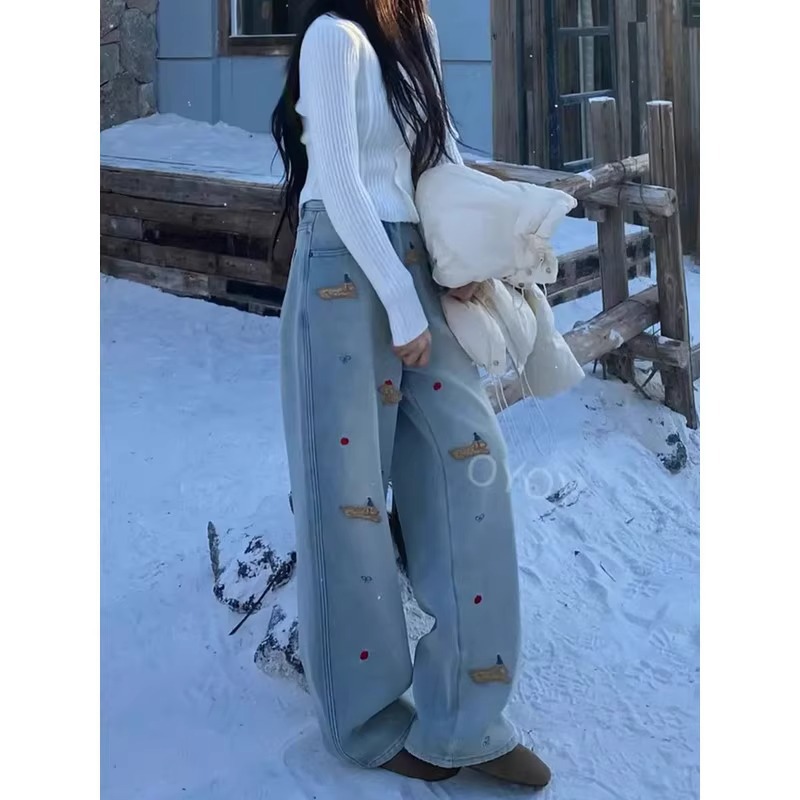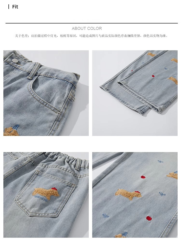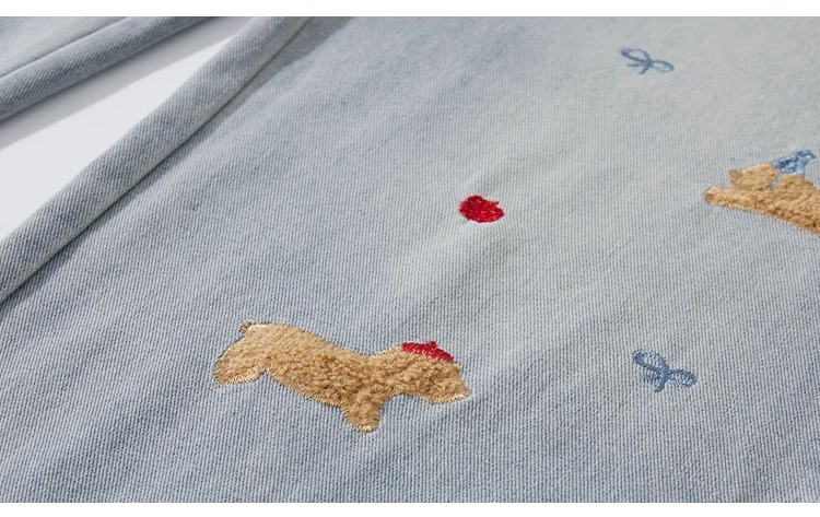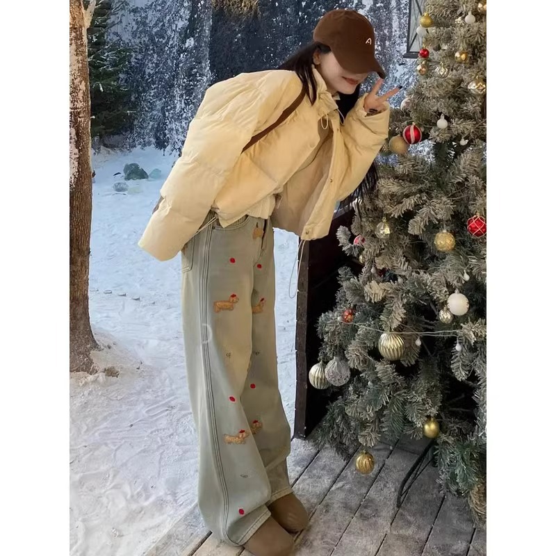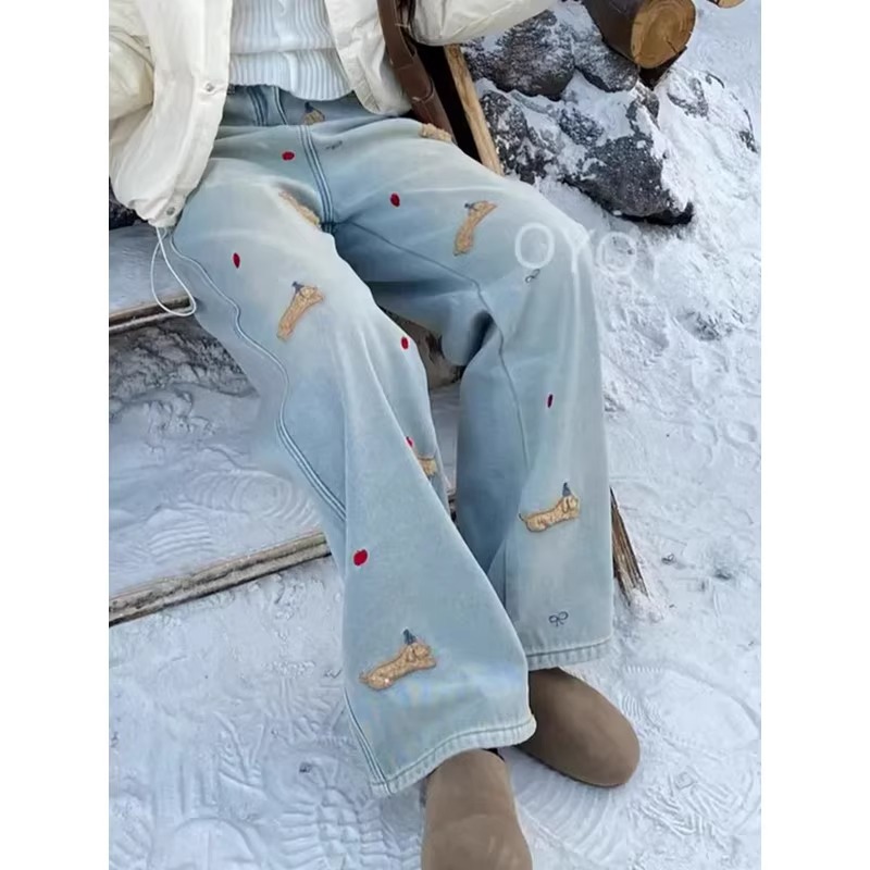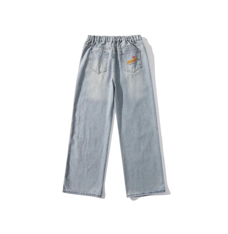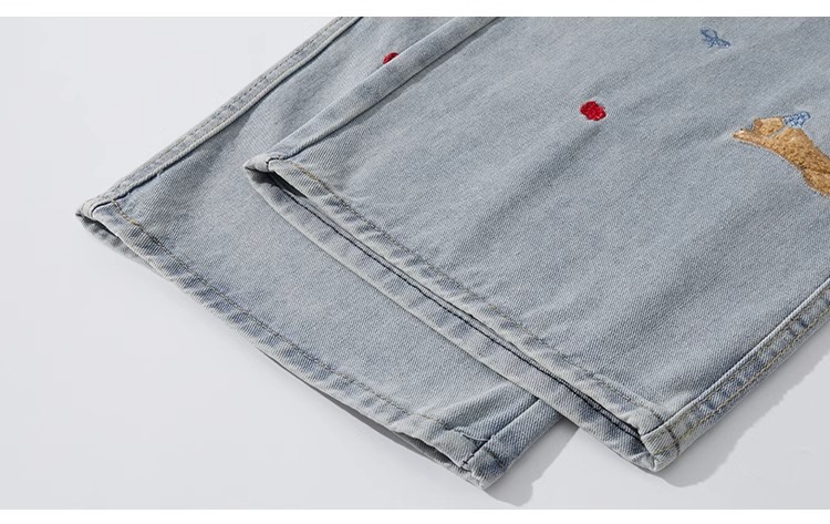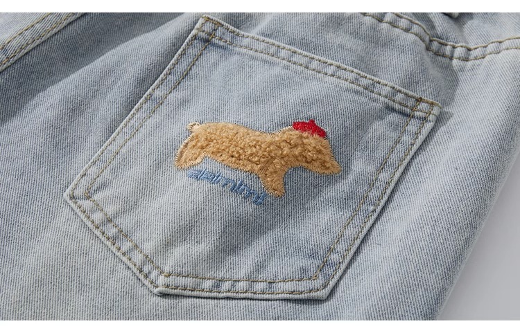 새로운 게으른 패션 미국 청바지 남성 닥스 훈트 개 자수 직선 다리 넓은 다리 바지 바지 우아한 하라주쿠 패션스토어 가기