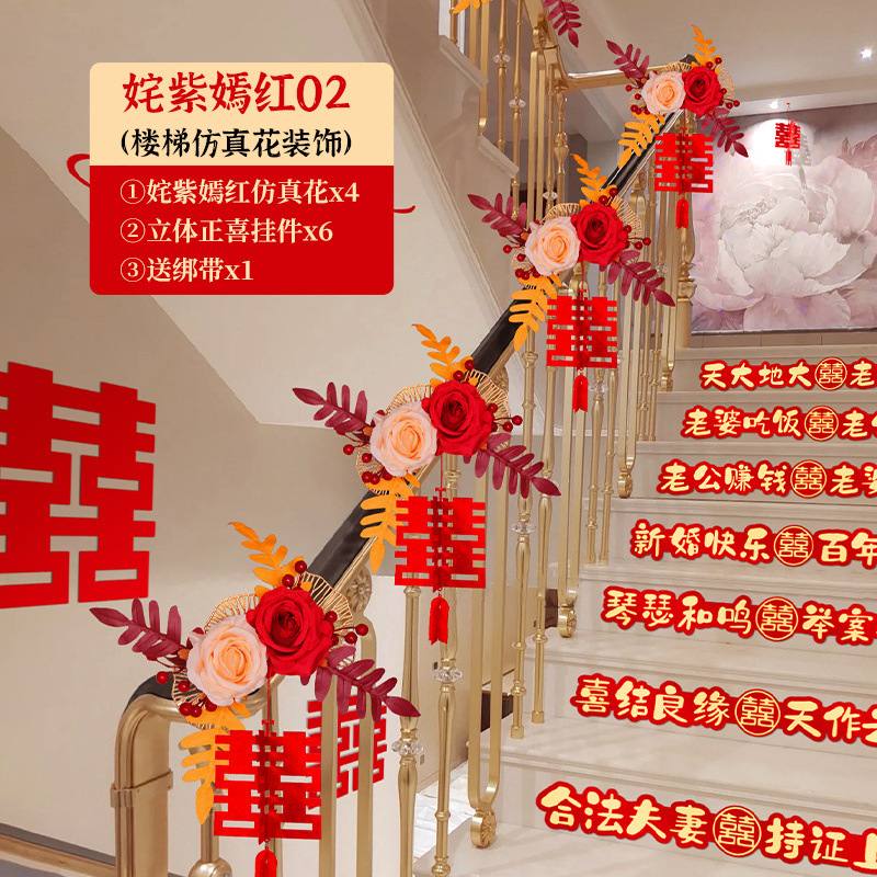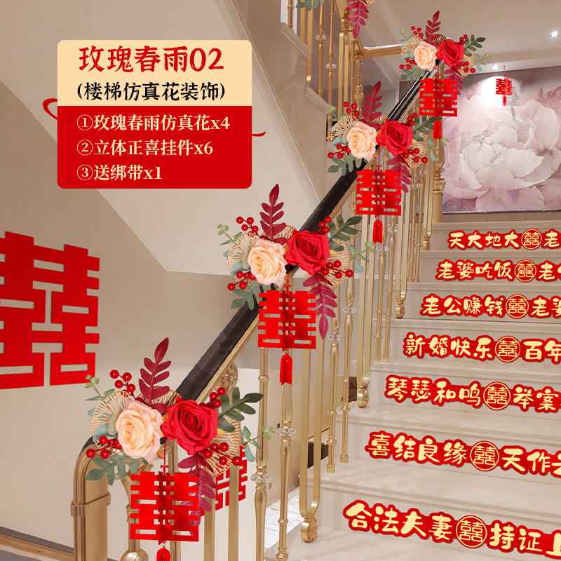 웨딩 계단 난간 웨딩 룸 장식 여성의 새 집 레이아웃 세트 웨딩 용품