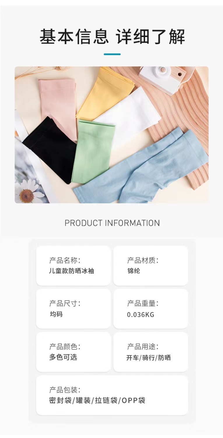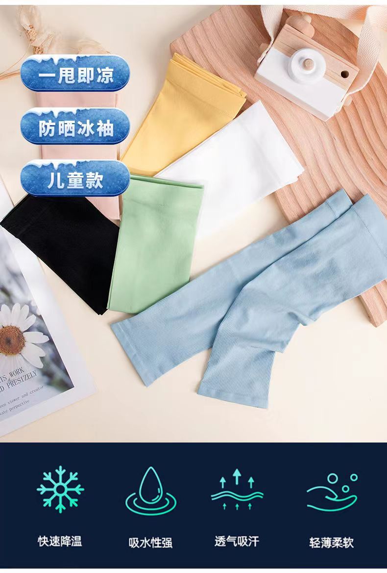어린이 아이스 슬리브 캔디 컬러 단색 선 스크린 아이스 슬리브 소년과 소녀 여름 야외 UV 보호 아이스 실크 소매 도매스토어 가기