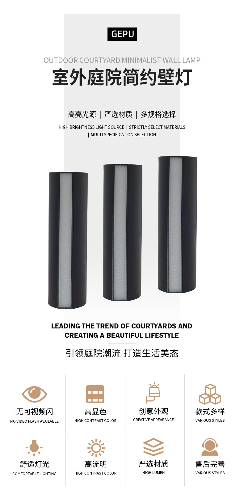 Led 야외 벽 램프 안뜰 야외 통로 복도 계단 빌라 정원 외벽 기둥 이중 머리 국경 벽 램프