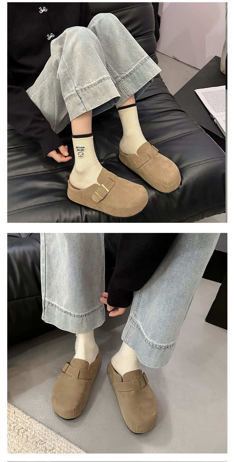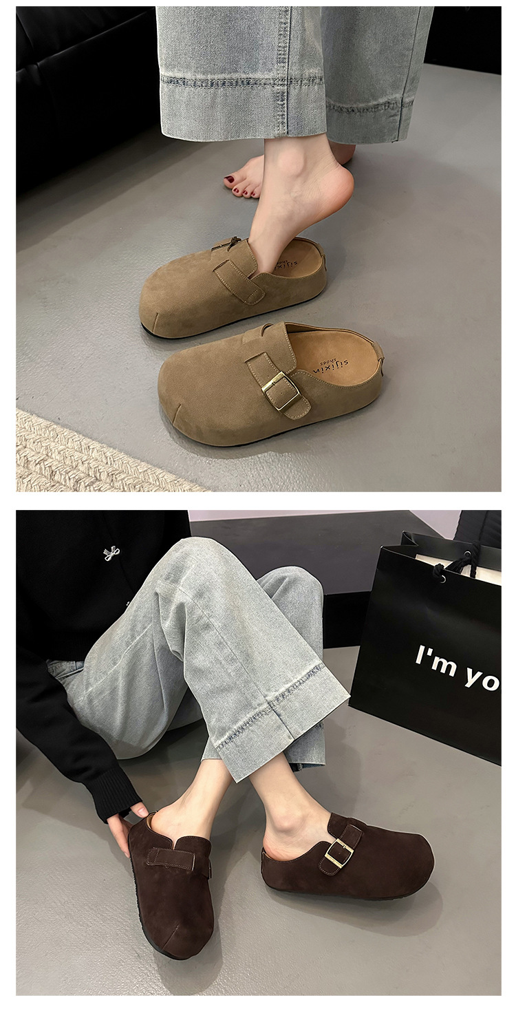 빈티지 프랑스 스타일 Baotou 하프 슬리퍼 여성의 2025 새로운 가을 패션 의상 게으른 올매치 플랫 버켄 네스 신발스토어 가기