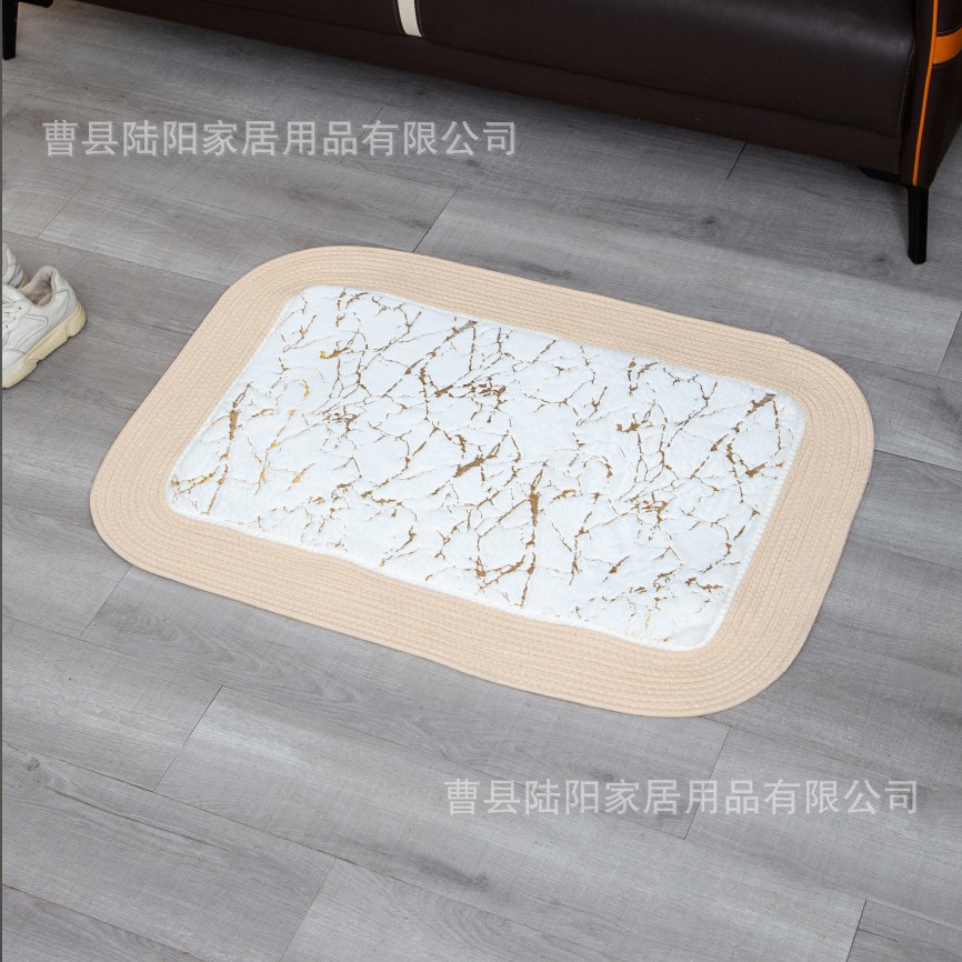 침대 옆 담요 모조 캐시미어 면 로프 짠 카펫 둥근 핫 스탬핑 대리석 패턴 북유럽 바닥 매트 입구 거실 소파