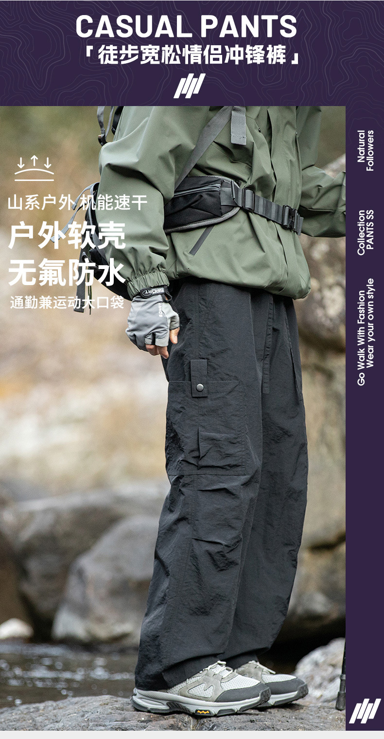 봄과 여름 새로운 캐주얼 바지 도시 야외 커플 충전 바지 4 시즌 바지 2 오픈