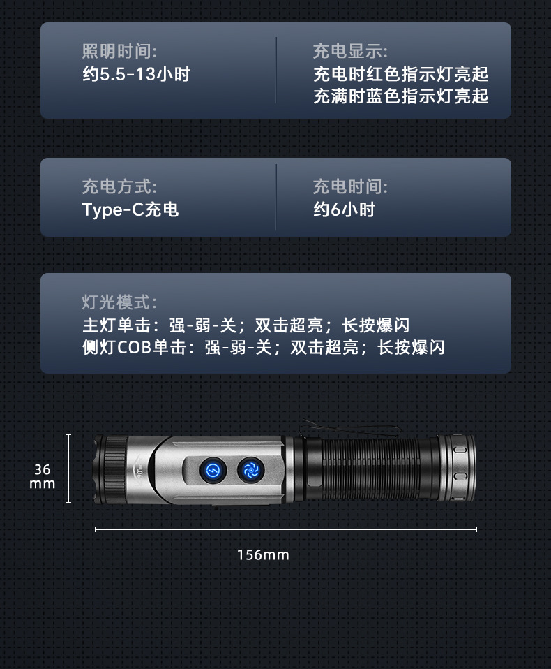 • ZH303 단일 손전등(배터리는 포함되어 있지 않음)