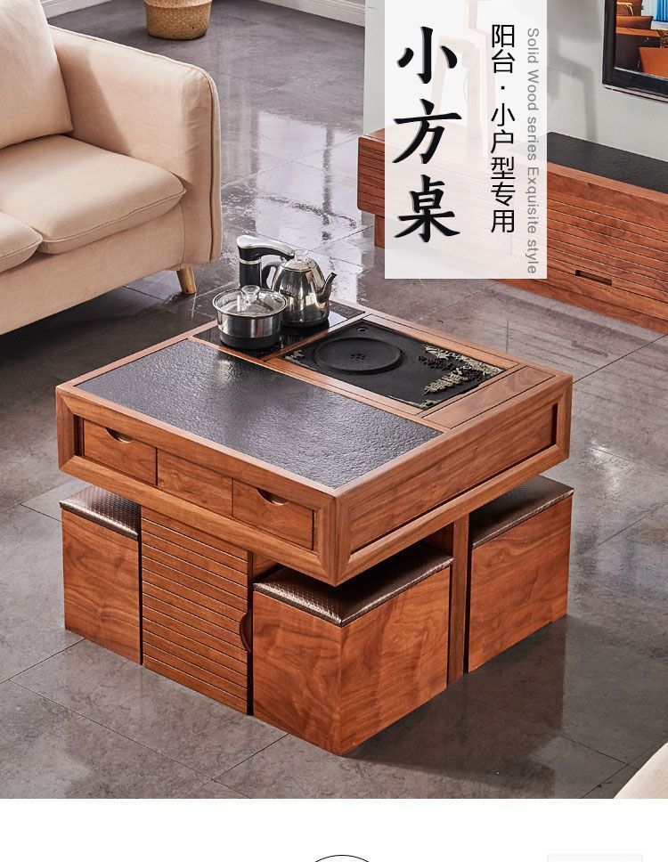 작은 아파트 쿵푸 커피 테이블 단단한 나무 작은 차 테이블 가구 광장 발코니 불 돌 차 테이블 조합 다기능스토어 가기