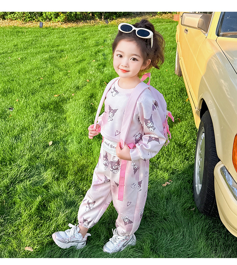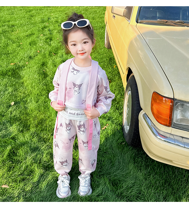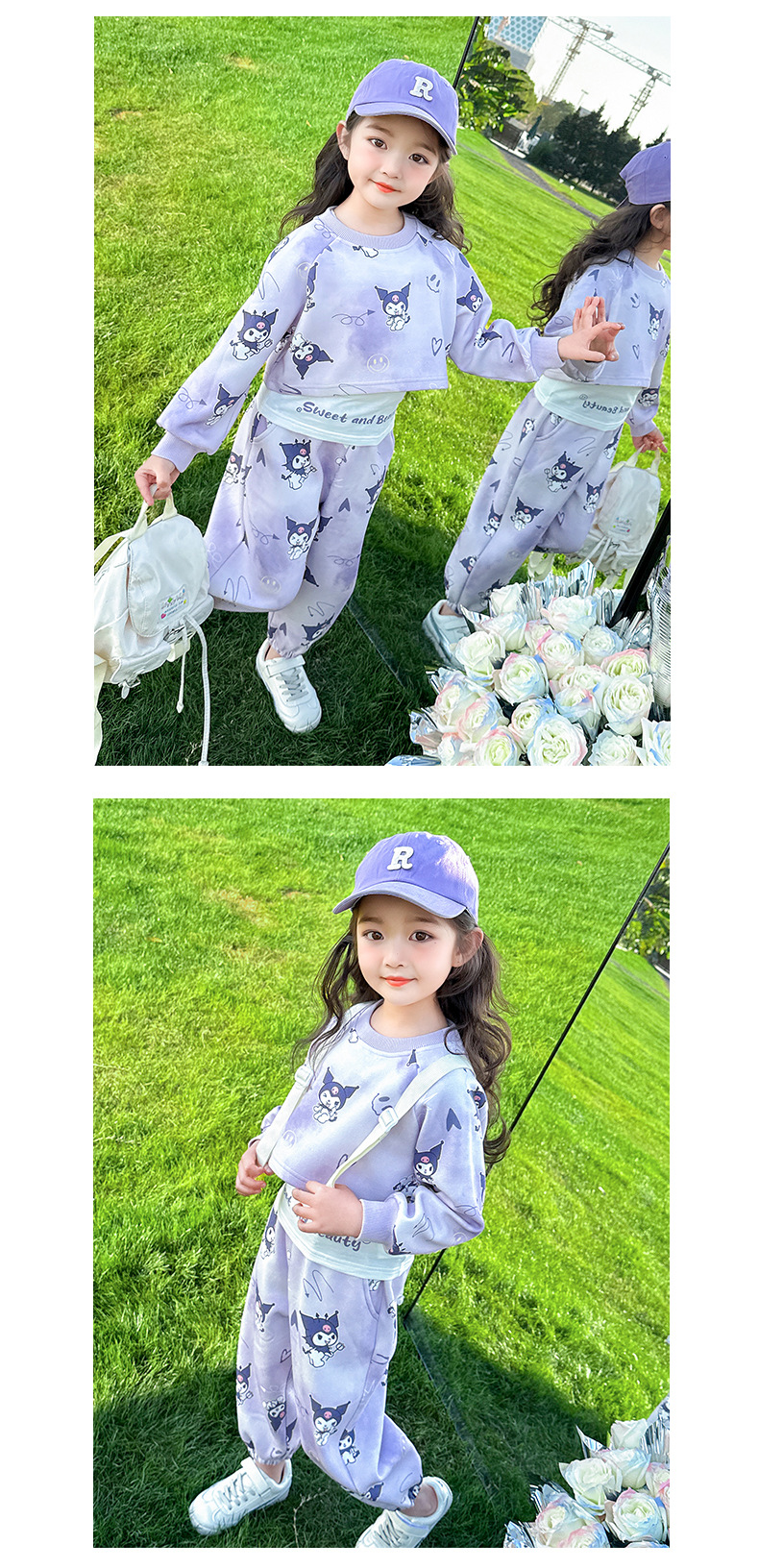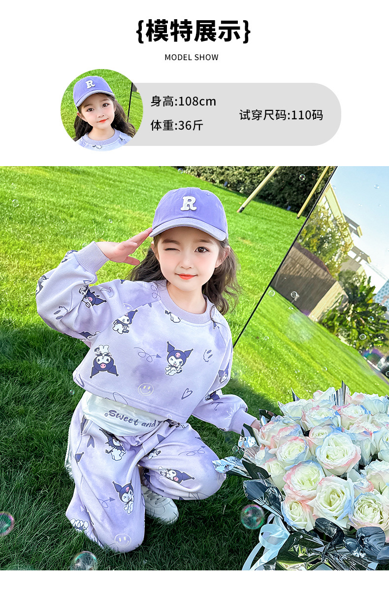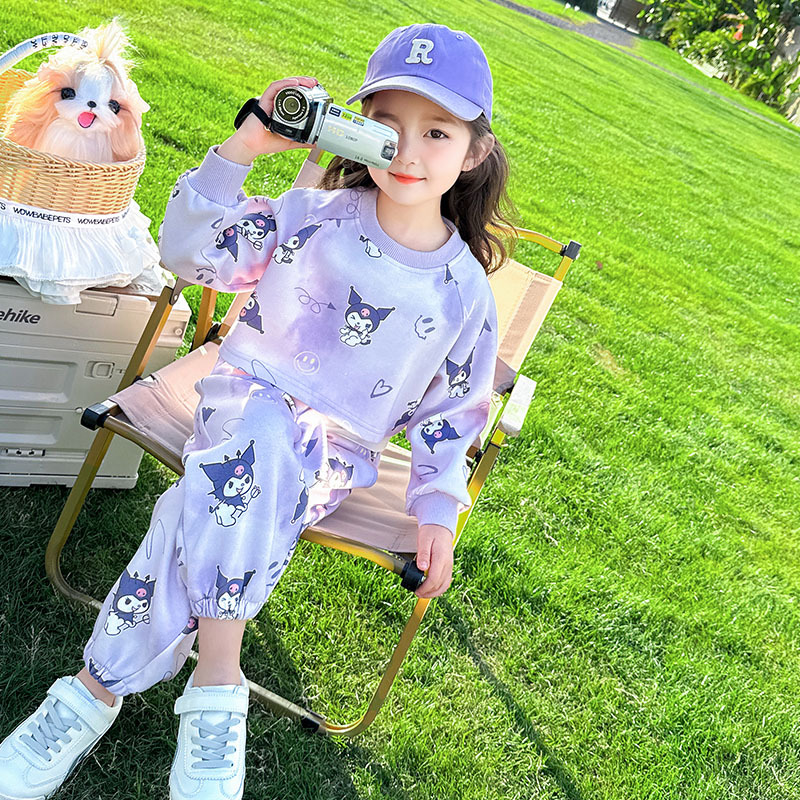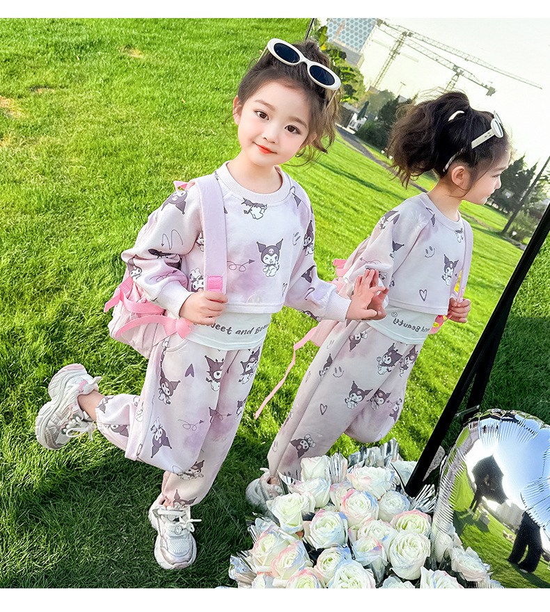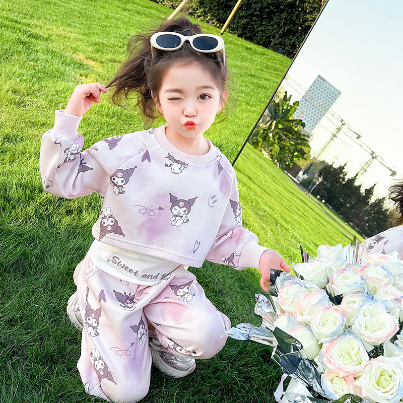 소녀 만화 전체 인쇄 편지 3 조각 세트 2025 봄과 가을 6 새로운 7 어린이 8 외국 스타일 패션 9 레저 세트