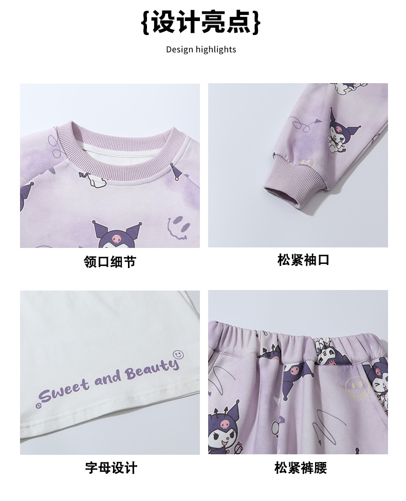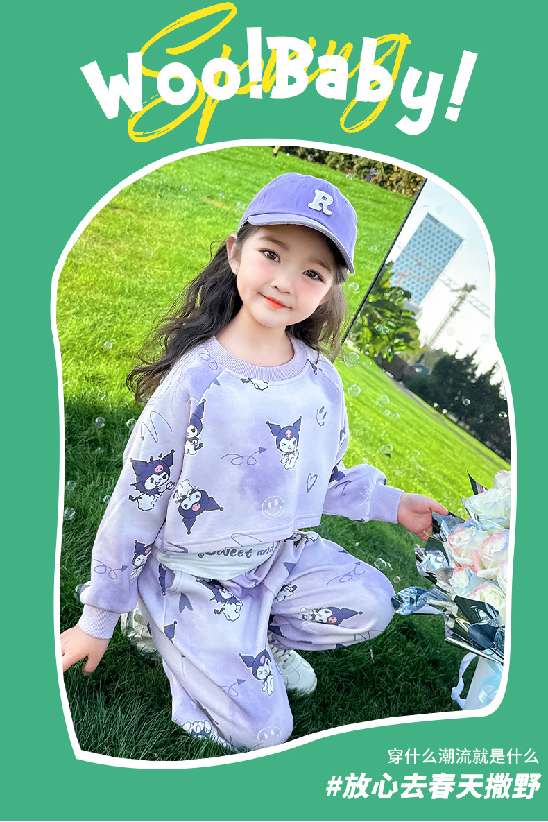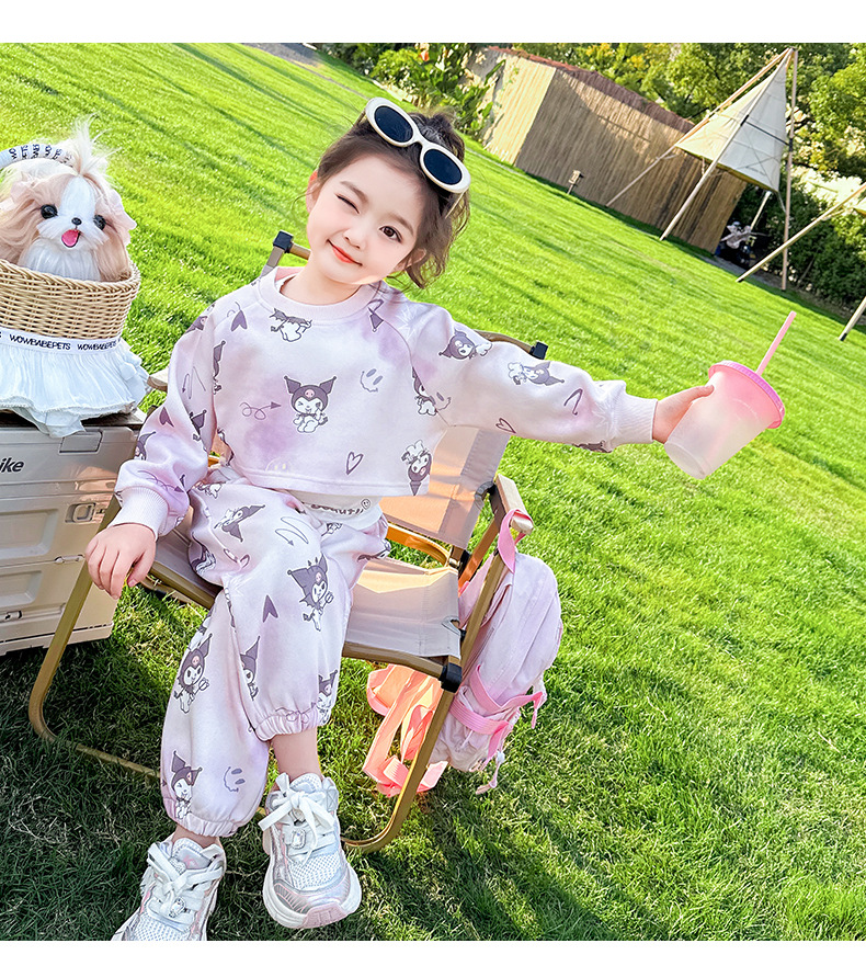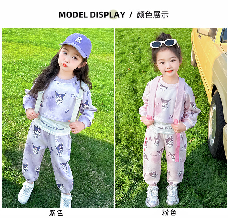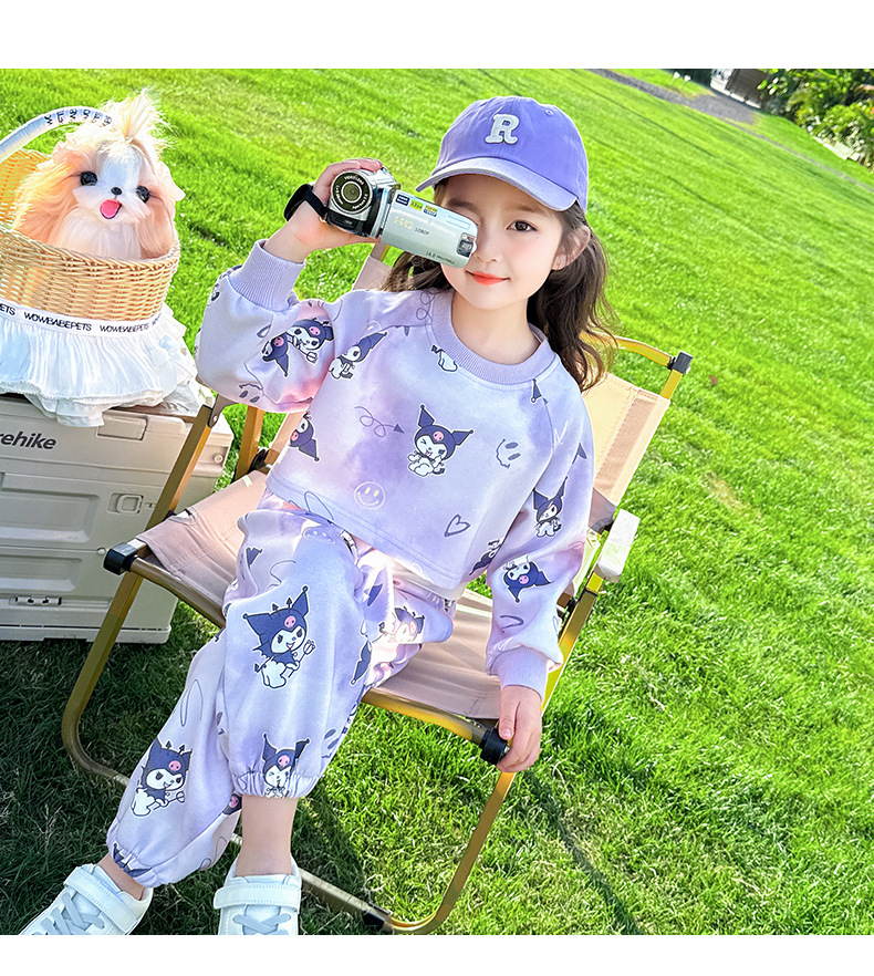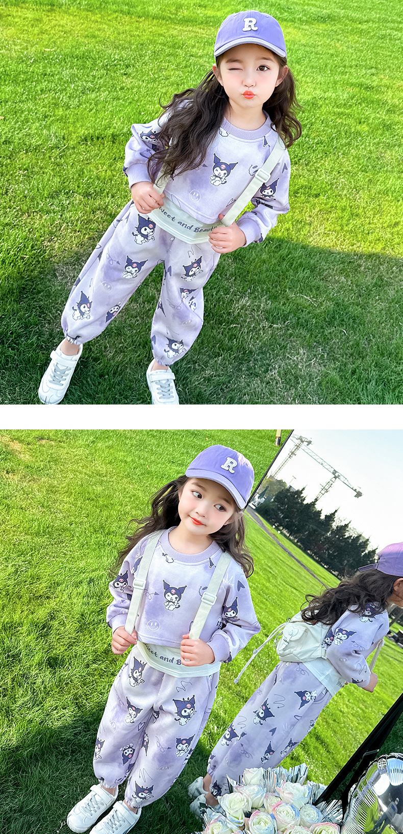 소녀 만화 전체 인쇄 편지 3 조각 세트 2025 봄과 가을 6 새로운 7 어린이 8 외국 스타일 패션 9 레저 세트