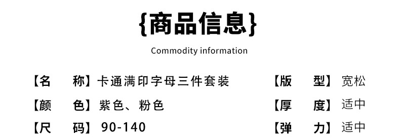 소녀 만화 전체 인쇄 편지 3 조각 세트 2025 봄과 가을 6 새로운 7 어린이 8 외국 스타일 패션 9 레저 세트스토어 가기