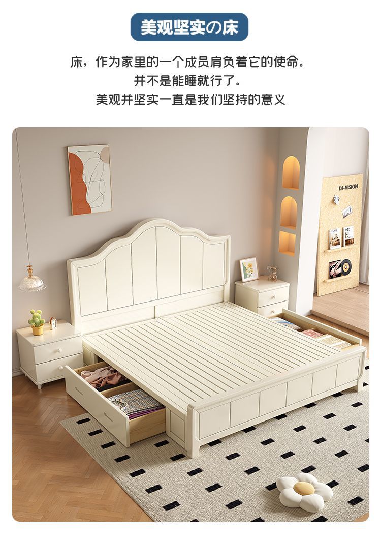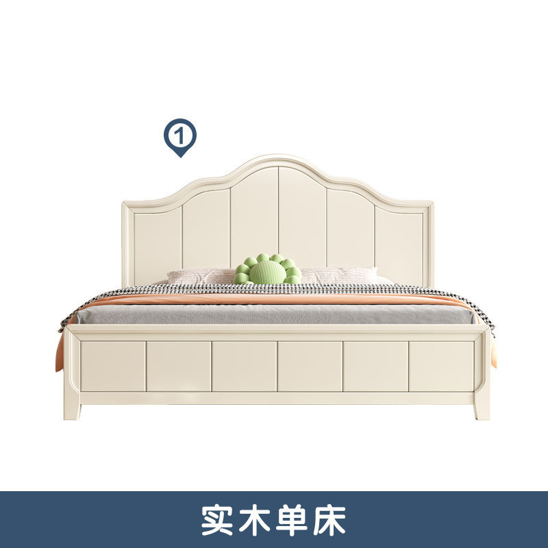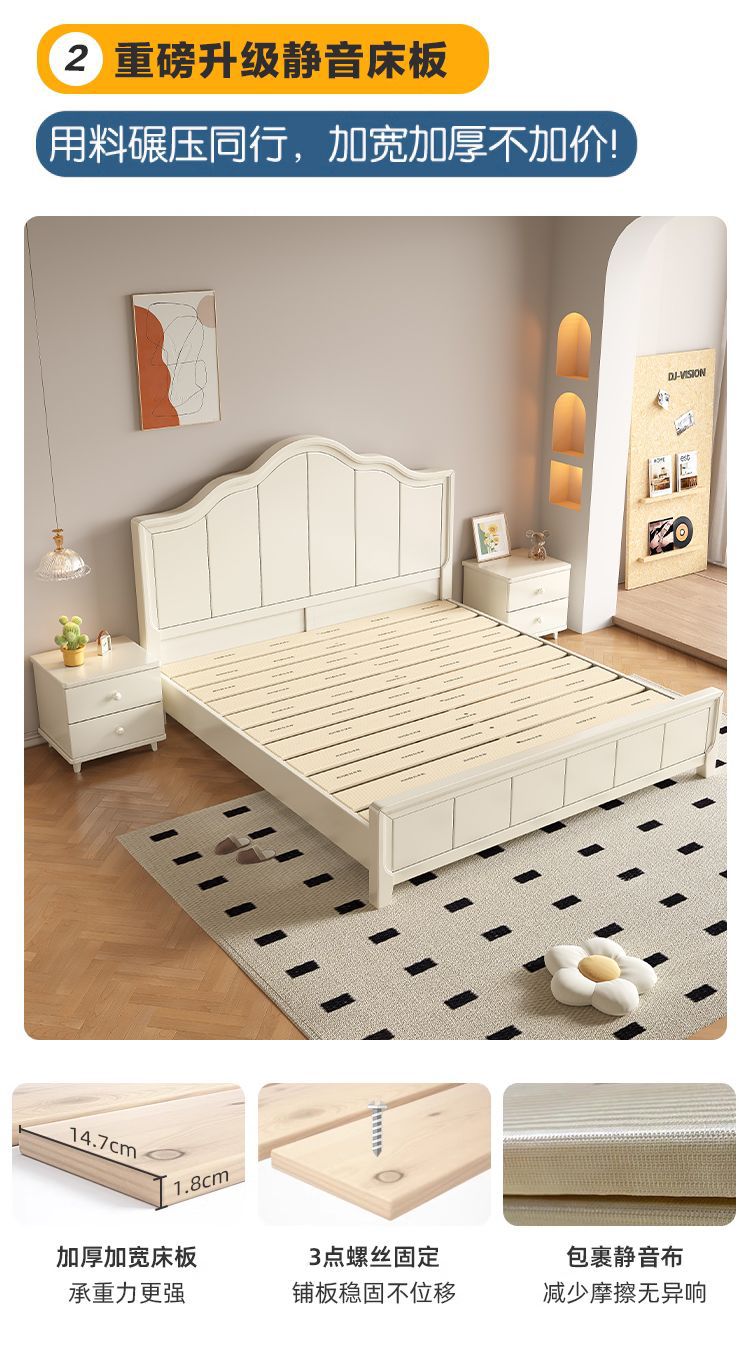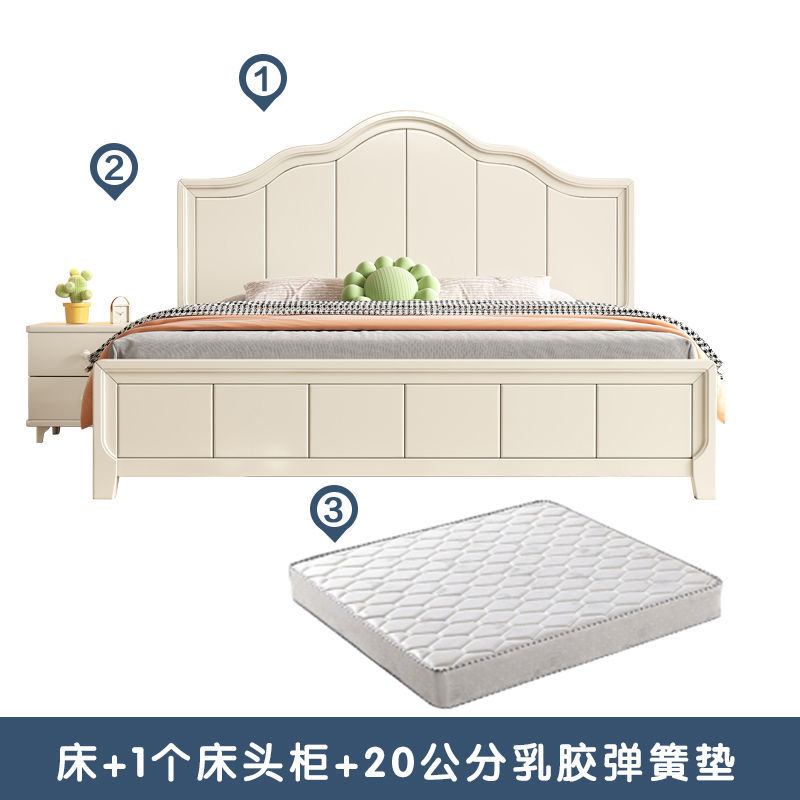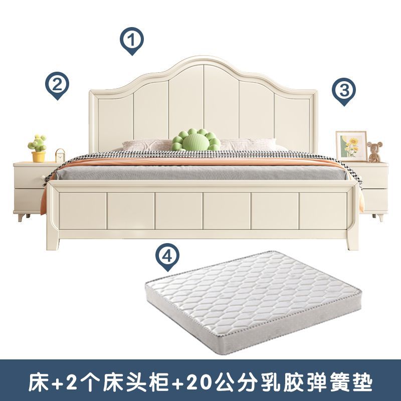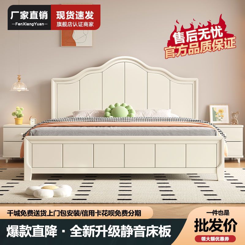 흰색 모든 단단한 나무 침대 현대 간단한 크림 스타일 더블 마스터 침실 1.5 m 싱글 작은 아파트 공주 침대스토어 가기