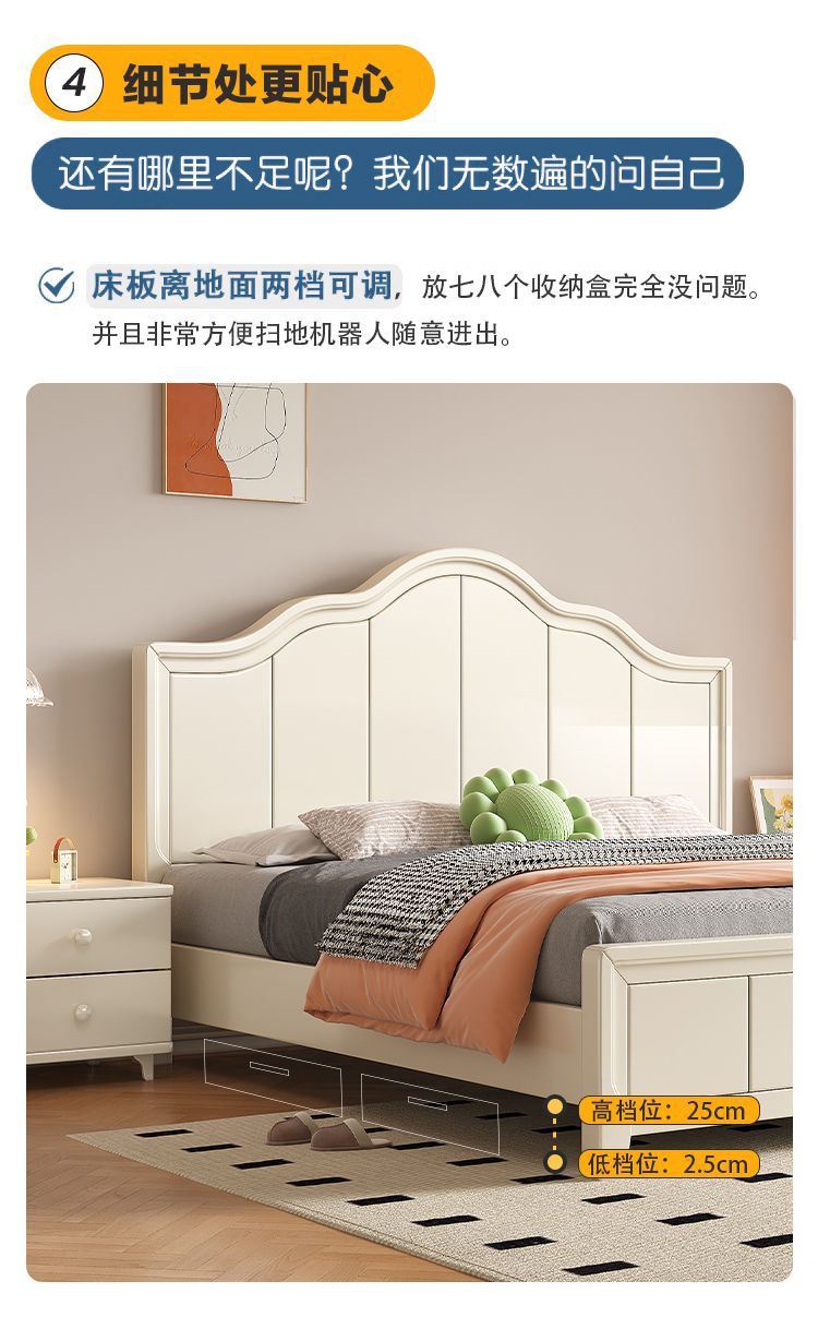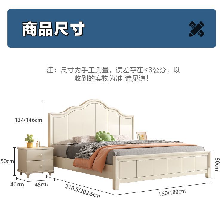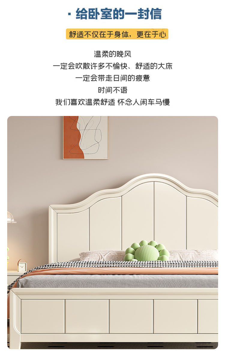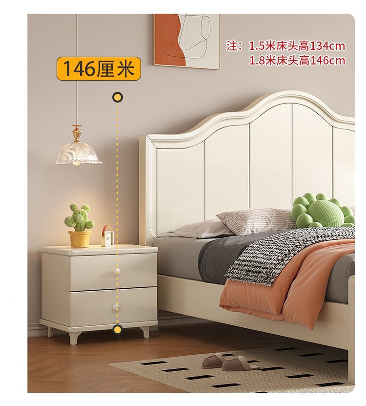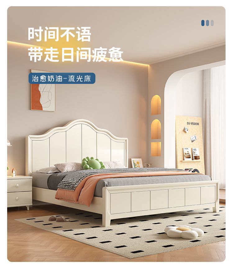 흰색 모든 단단한 나무 침대 현대 간단한 크림 스타일 더블 마스터 침실 1.5 m 싱글 작은 아파트 공주 침대스토어 가기