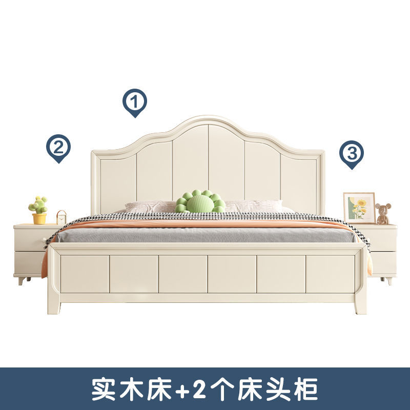 흰색 모든 단단한 나무 침대 현대 간단한 크림 스타일 더블 마스터 침실 1.5 m 싱글 작은 아파트 공주 침대