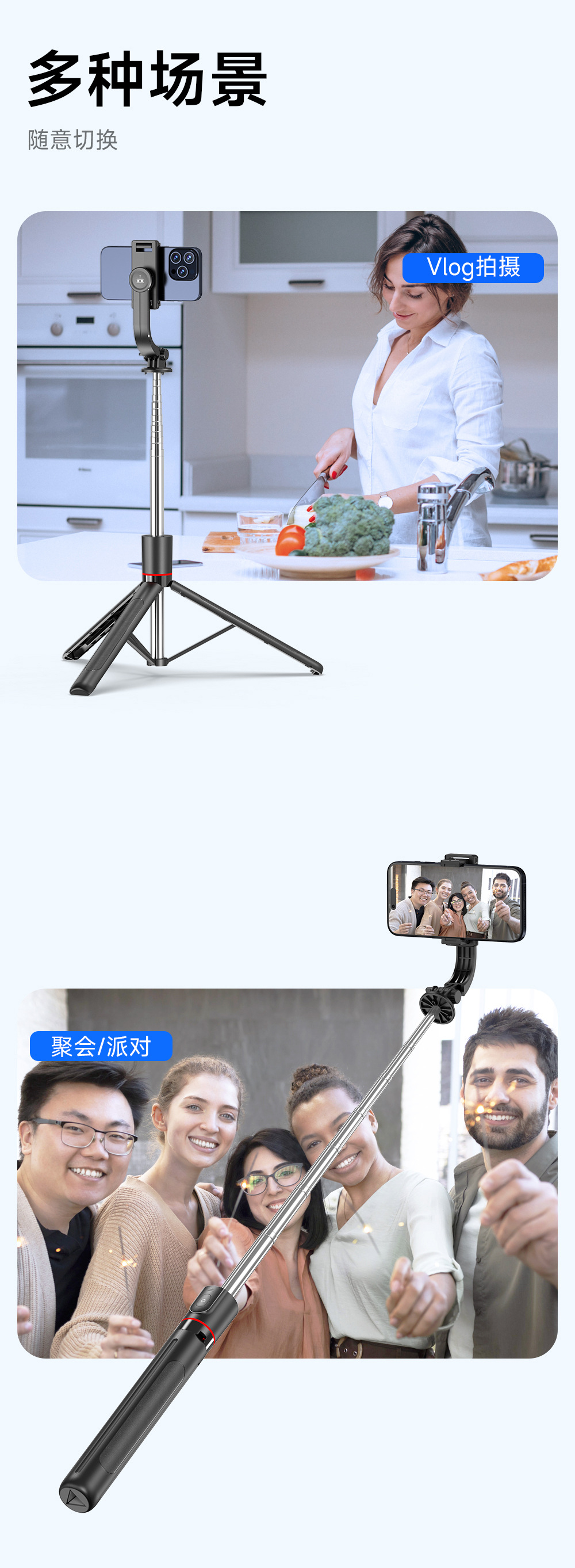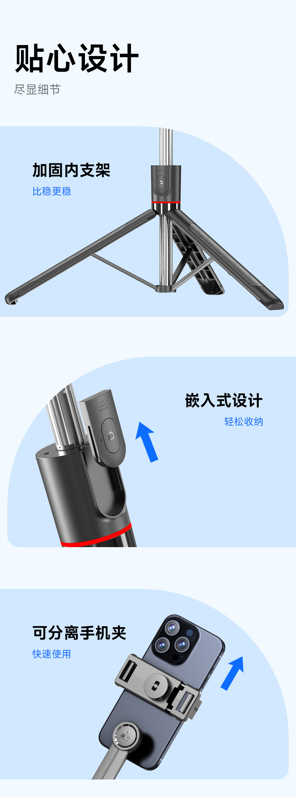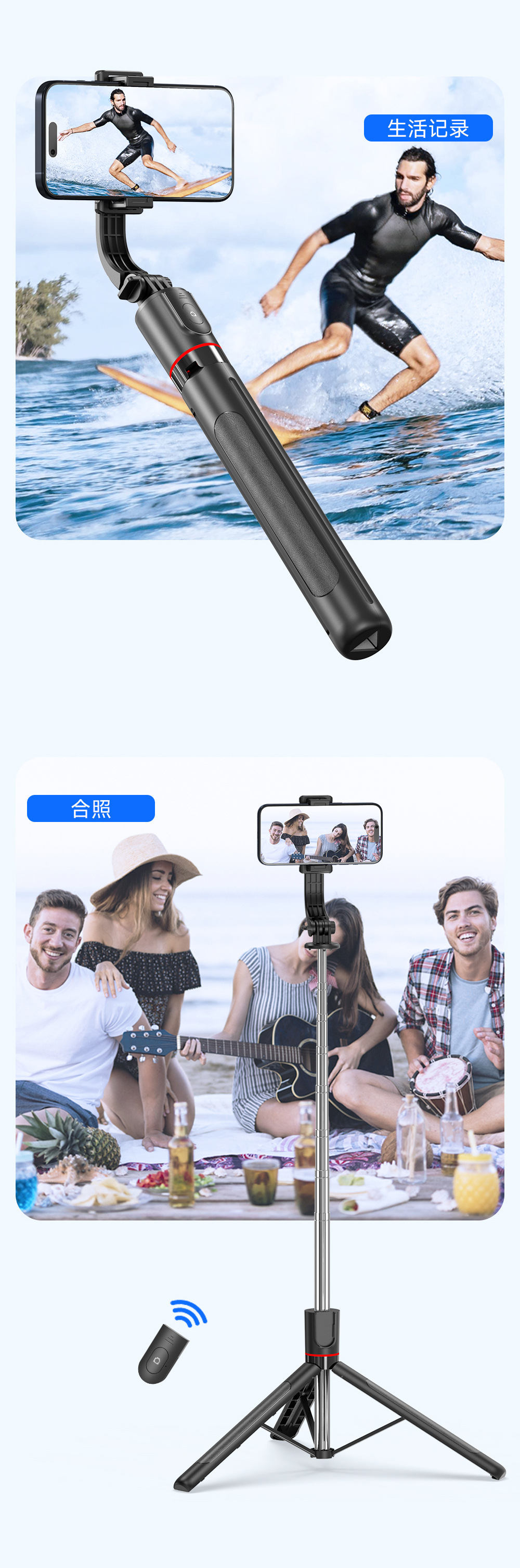 • 【F15 스탠다드 버전】 1.7m 길이 조절 스탠드 + 블루투스 리모컨 + 용골 지지대 + 탈착식 휴대폰 거치대
