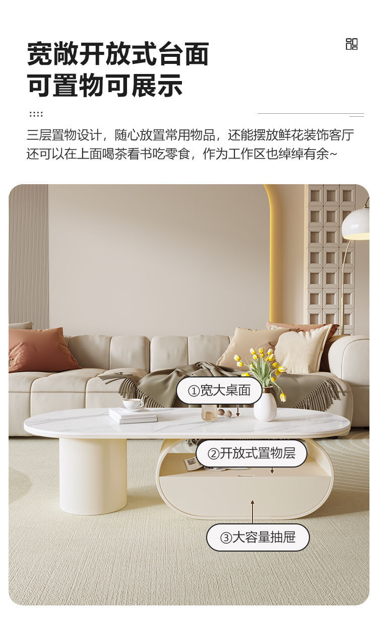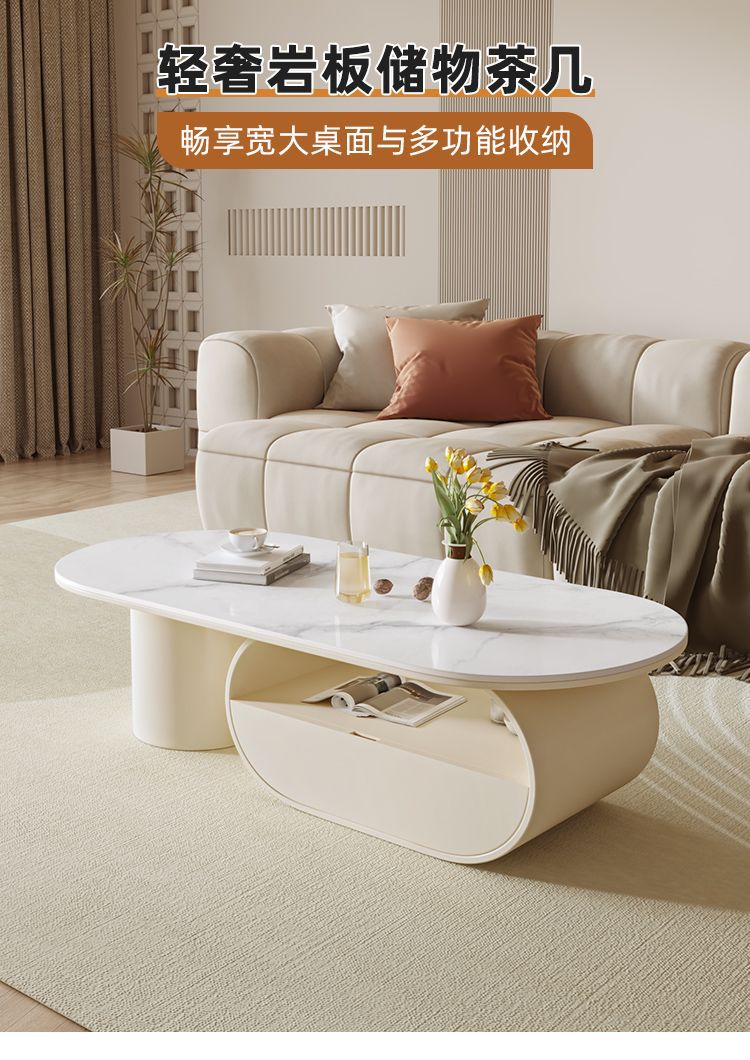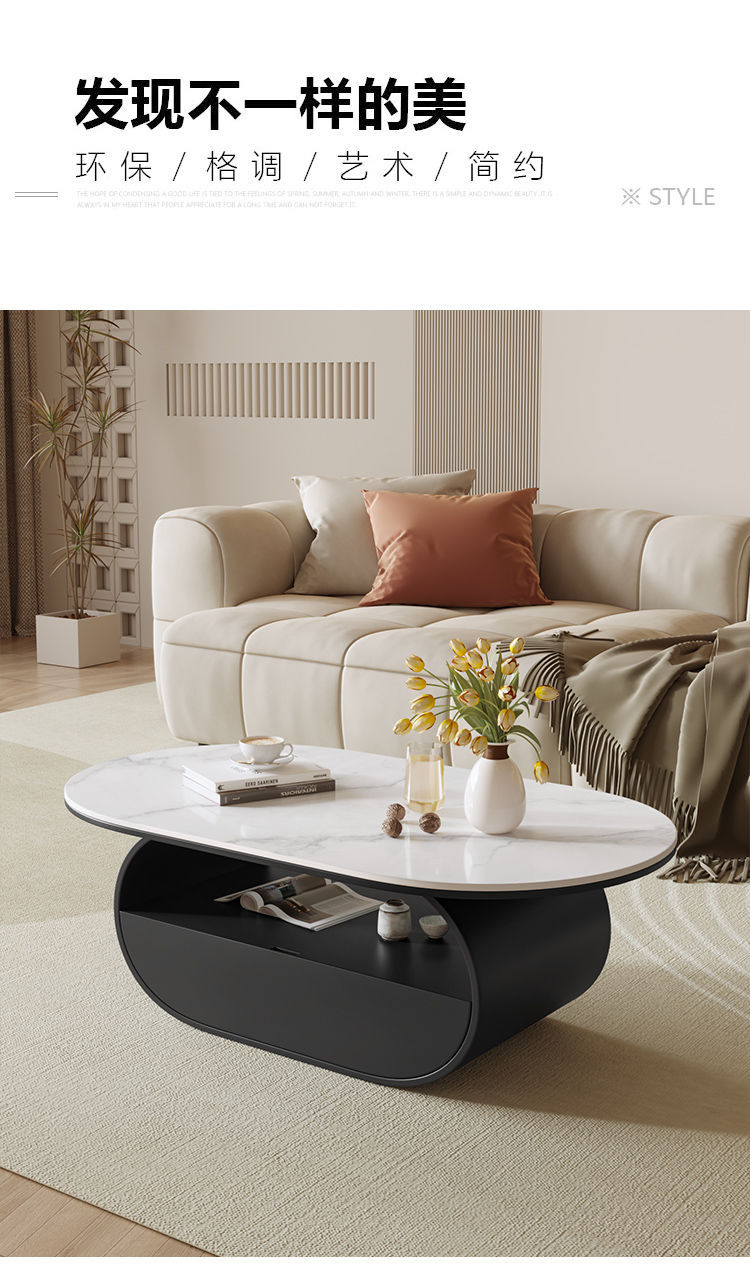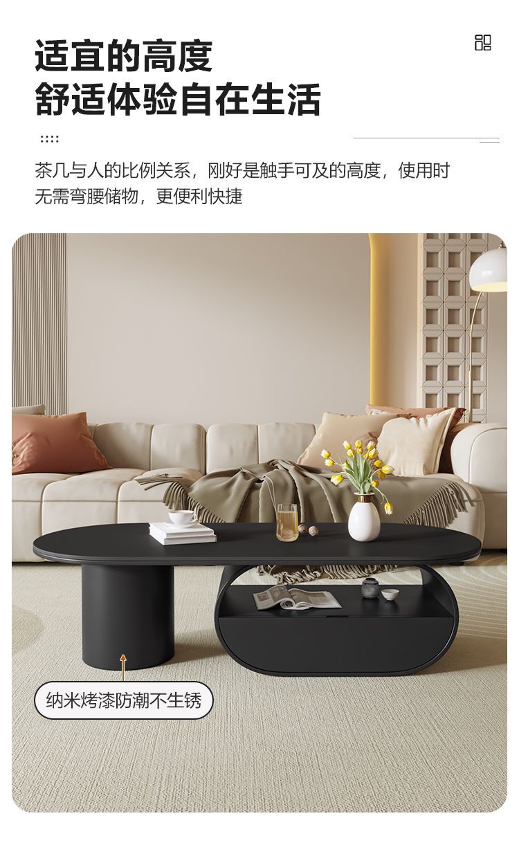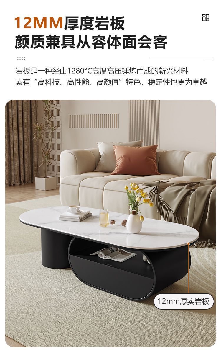 가벼운 고급 이탈리아 록 보드 커피 테이블 거실 작은 아파트 가정용 고급 현대 간단한 새로운 타원형 TV 캐비닛스토어 가기