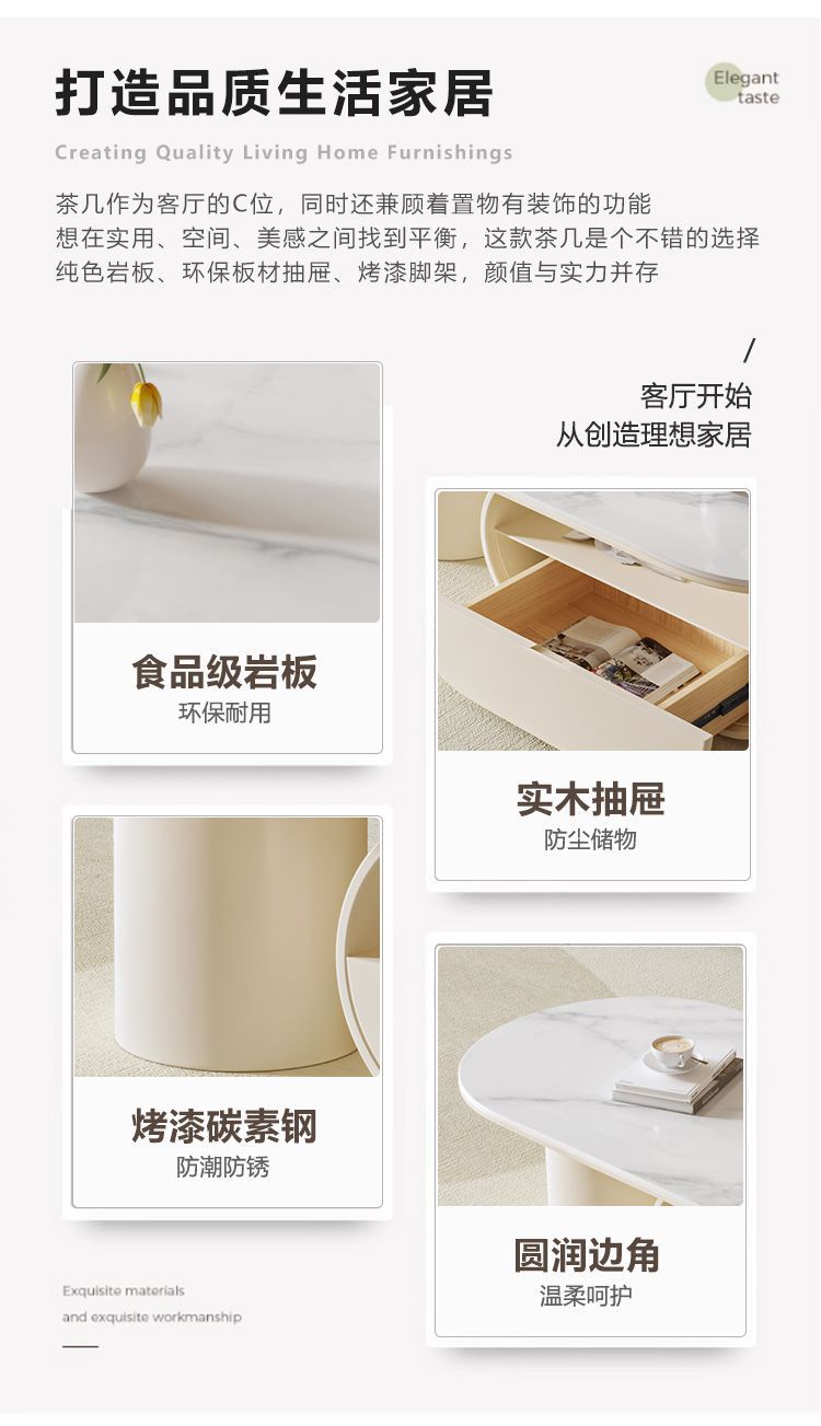 가벼운 고급 이탈리아 록 보드 커피 테이블 거실 작은 아파트 가정용 고급 현대 간단한 새로운 타원형 TV 캐비닛