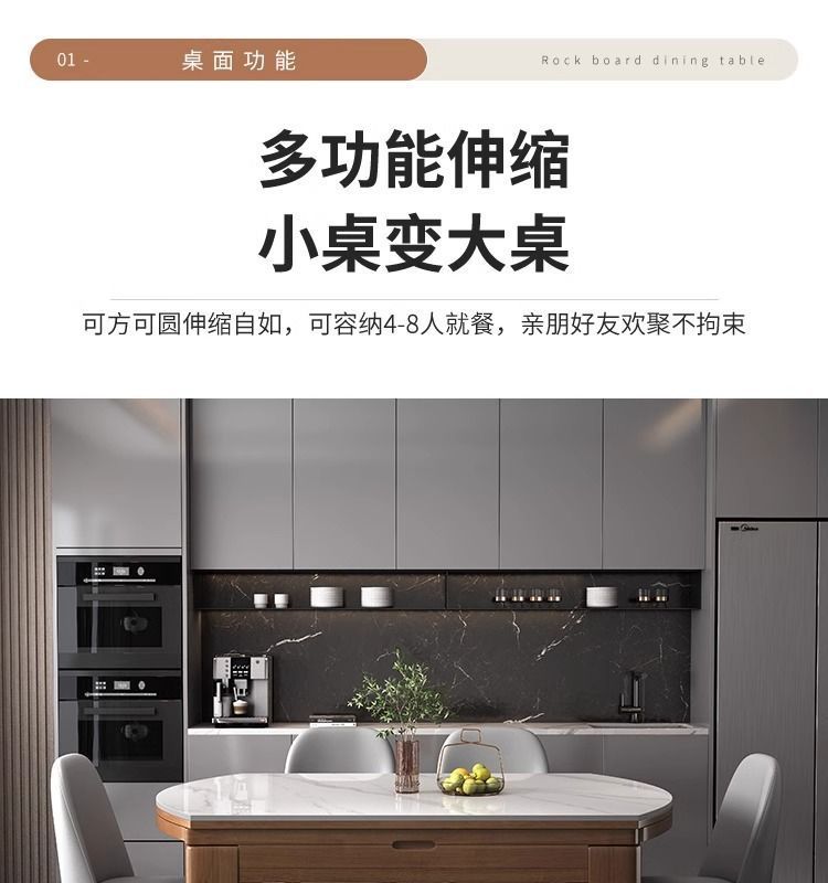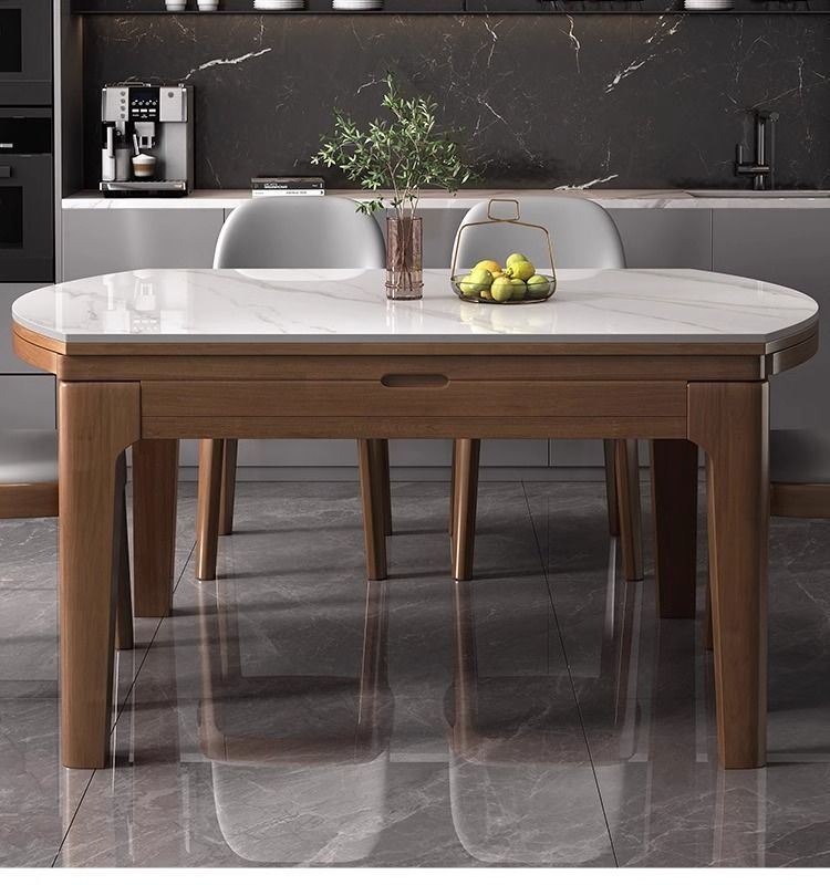 록 보드 식탁 조합 작은 아파트 텔레스코픽 접이식 현대 식탁 간단한 정사각형과 둥근 이중 사용 솔리드 우드 가정용 식탁 및 의자