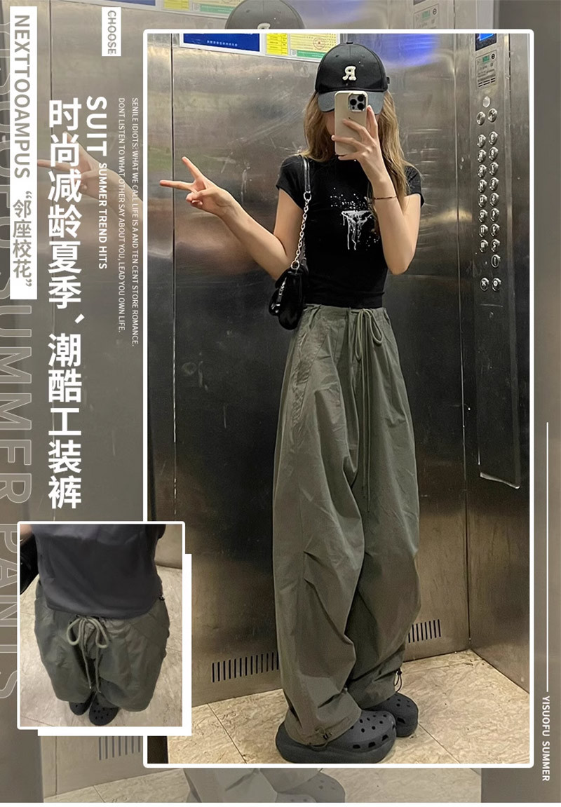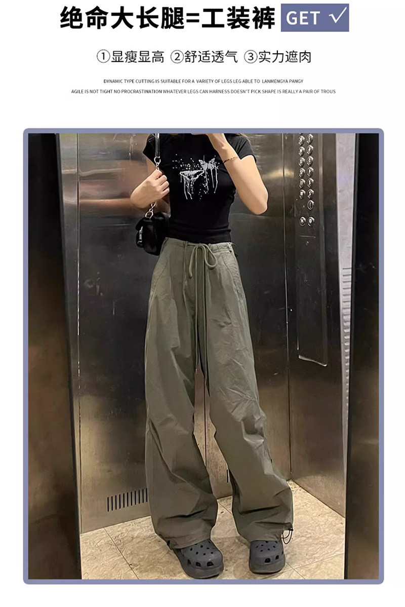 군녹색 여성용 등산 작업복 바지 2026년 신상 여름 미국 스타일 아웃도어 스포츠 바지 봄 가을 하이웨이스트 스트레이트 와이드 팬츠스토어 가기