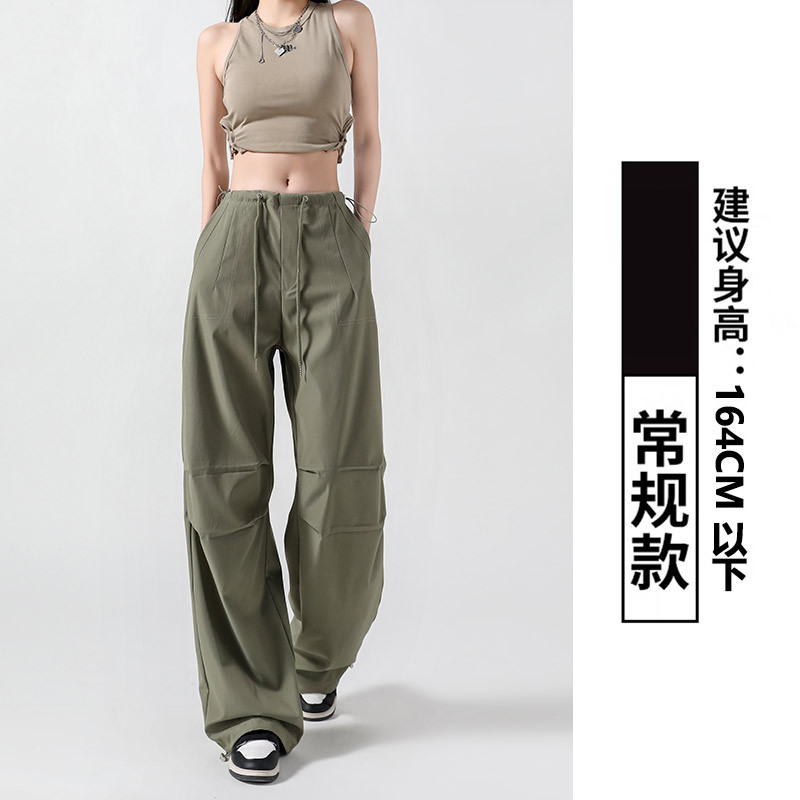 군녹색 여성용 등산 작업복 바지 2026년 신상 여름 미국 스타일 아웃도어 스포츠 바지 봄 가을 하이웨이스트 스트레이트 와이드 팬츠