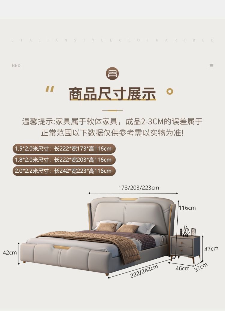 • 고급 가죽 침대 + 캐비닛 1개 + 7성 클라우드 매트리스