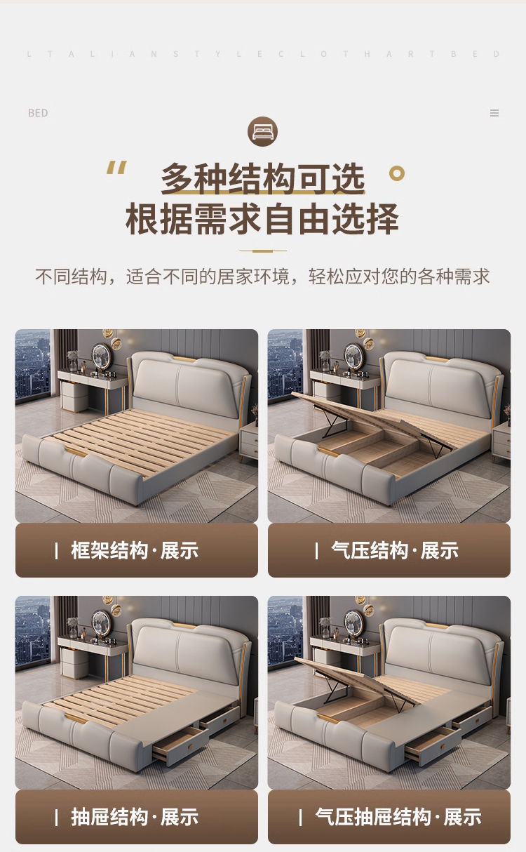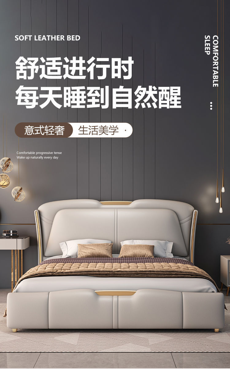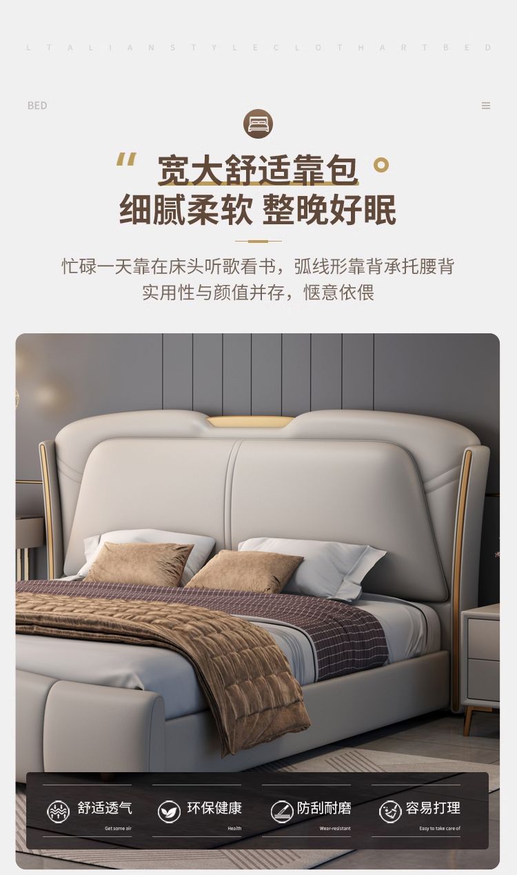 이탈리아 빛 고급 가죽 침대 럭셔리 2024 새로운 스타일 큰 침대 하이 엔드 소프트 가방 웨딩 침대 마스터 침실 보관 더블 침대스토어 가기