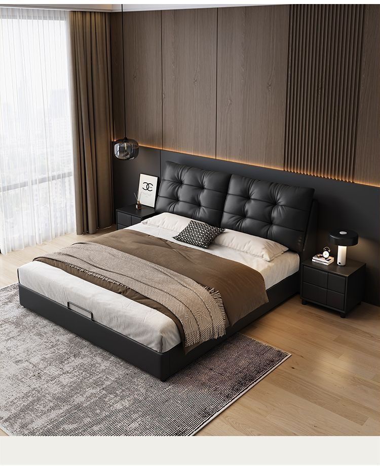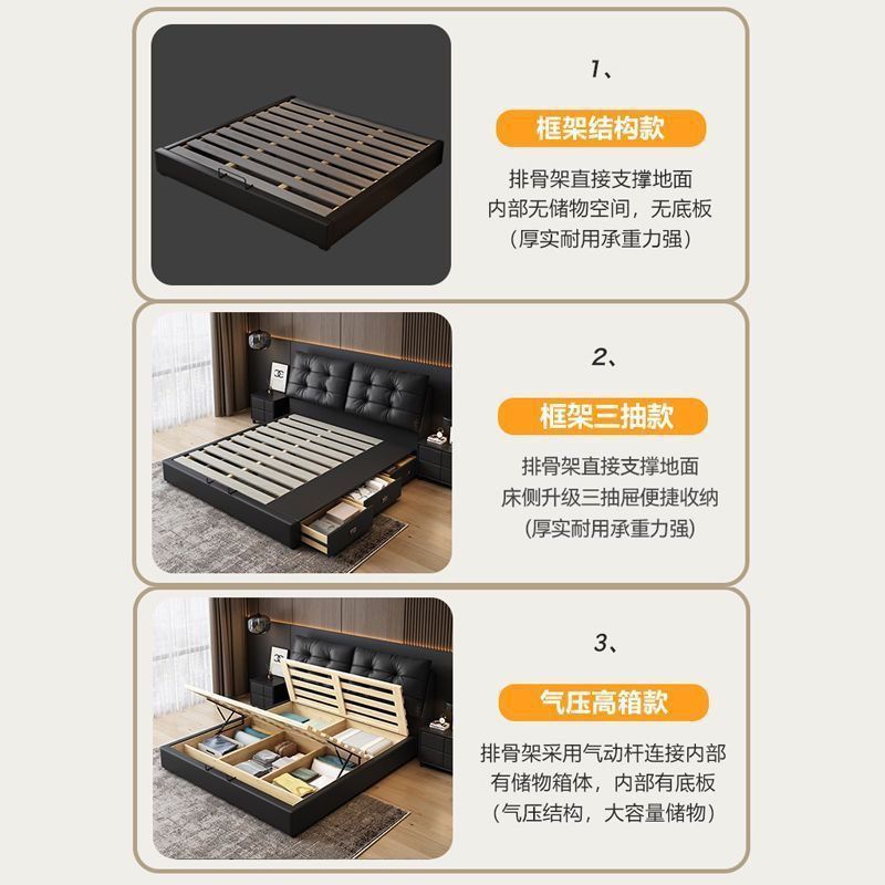 이탈리아 스타일 북유럽 현대 가죽 간단한 더블 침대 공기 압력 1.5 마스터 침실 1.8 웨딩 침대 대형 스토리지 고급 침대