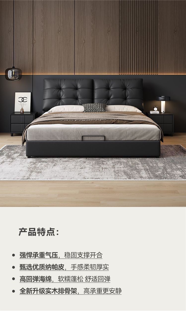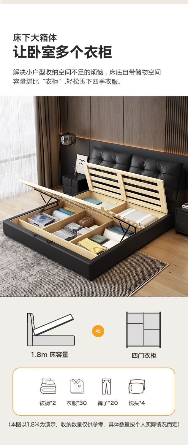 이탈리아 스타일 북유럽 현대 가죽 간단한 더블 침대 공기 압력 1.5 마스터 침실 1.8 웨딩 침대 대형 스토리지 고급 침대스토어 가기