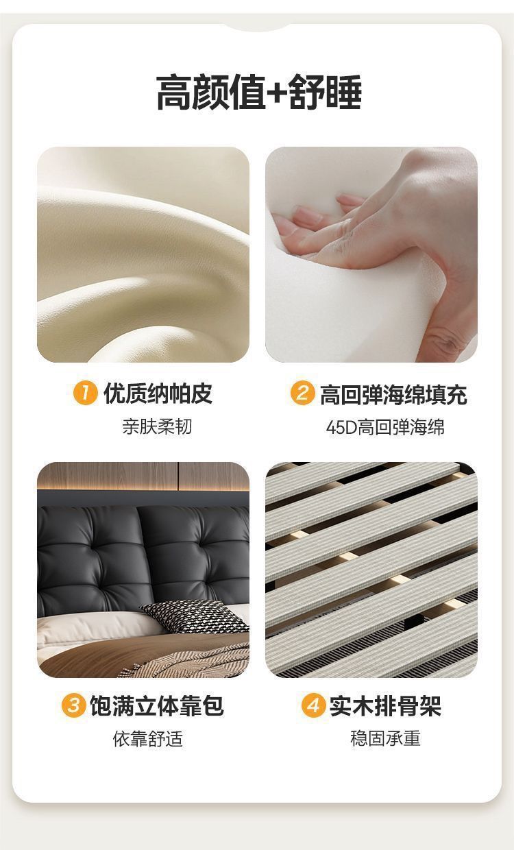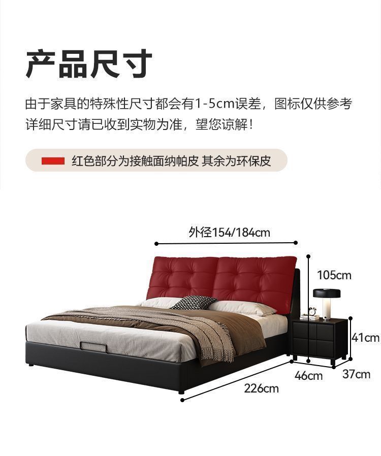 • 프리미엄 가죽 침대 - 아이스 실크 라텍스 매트리스 + 캐비닛 1개