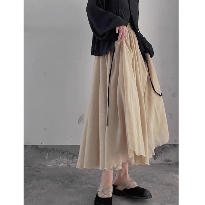 프랑스 스타일 쿨 센스 예술적 스커트 대형 스윙 우산 스커트 여성의 봄 주름 치마 높은 허리 슬림 A-라인 긴 스커트 봄과 여름스토어 가기