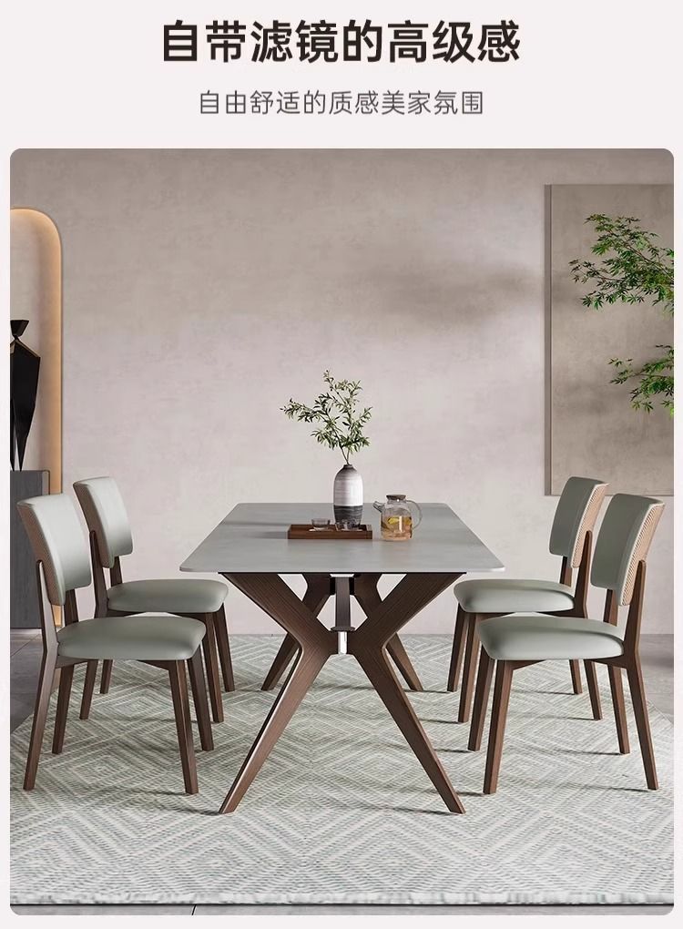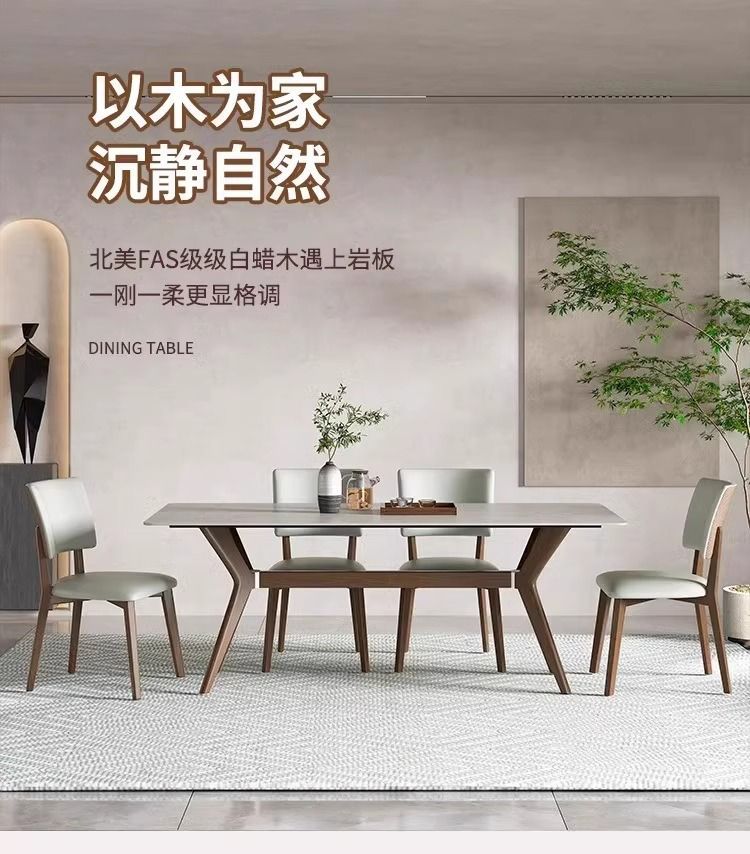 새로운 북유럽 스타일 솔리드 우드 록 보드 데스크탑 식탁 및 의자 조합 현대 간단한 작은 아파트 가정용 전체베이스 식탁스토어 가기