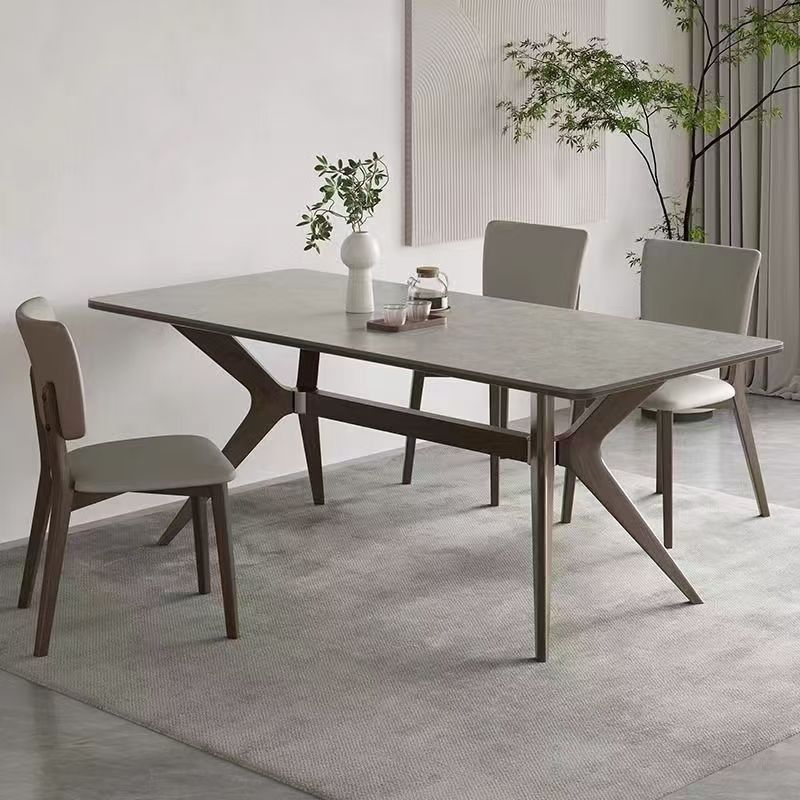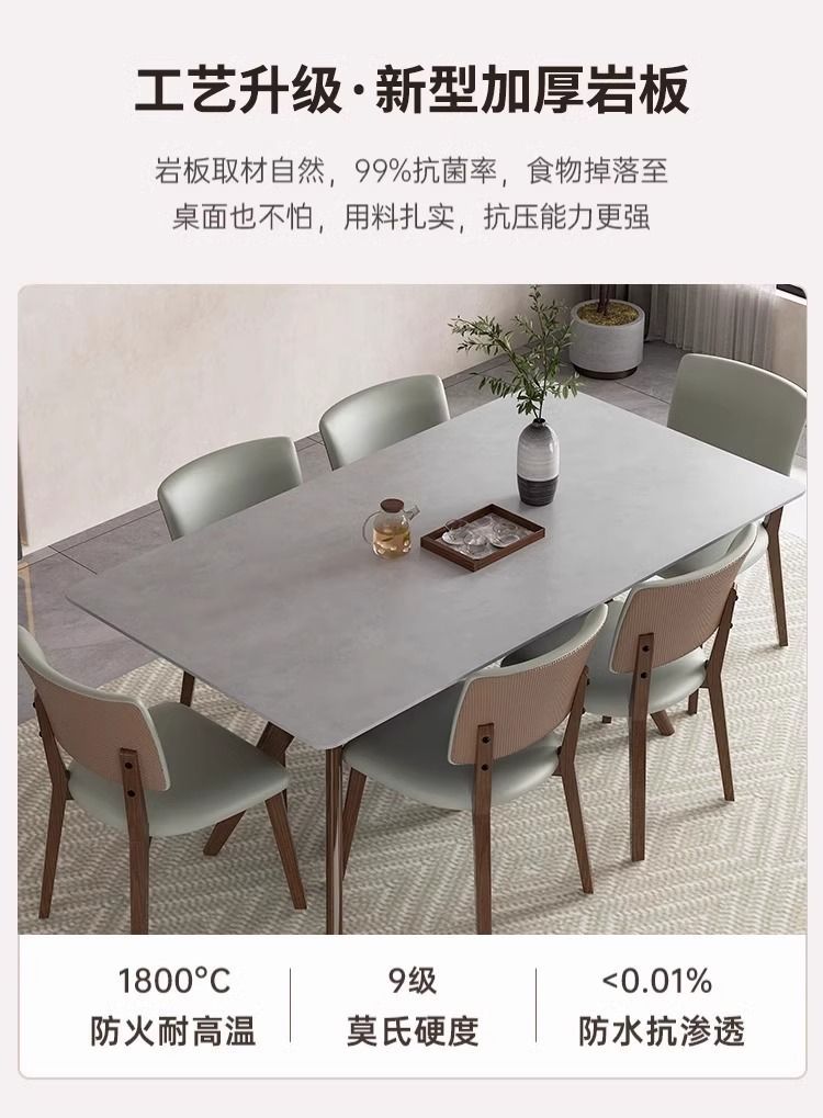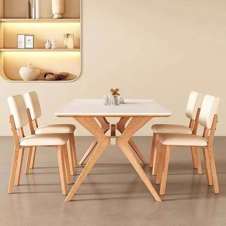 새로운 북유럽 스타일 솔리드 우드 록 보드 데스크탑 식탁 및 의자 조합 현대 간단한 작은 아파트 가정용 전체베이스 식탁
