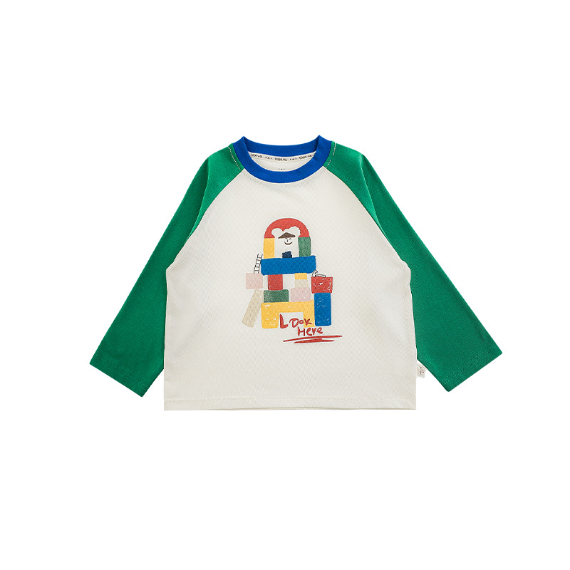Wurib a boy 2025 새로운 만화 대비 컬러 티셔츠 봄 인기있는 다재다능한 어린이 긴 소매 크루 넥 탑