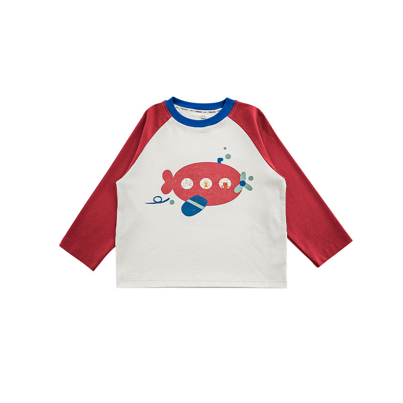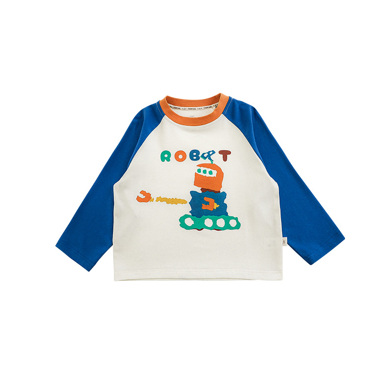 Wurib a boy 2025 새로운 만화 대비 컬러 티셔츠 봄 인기있는 다재다능한 어린이 긴 소매 크루 넥 탑스토어 가기