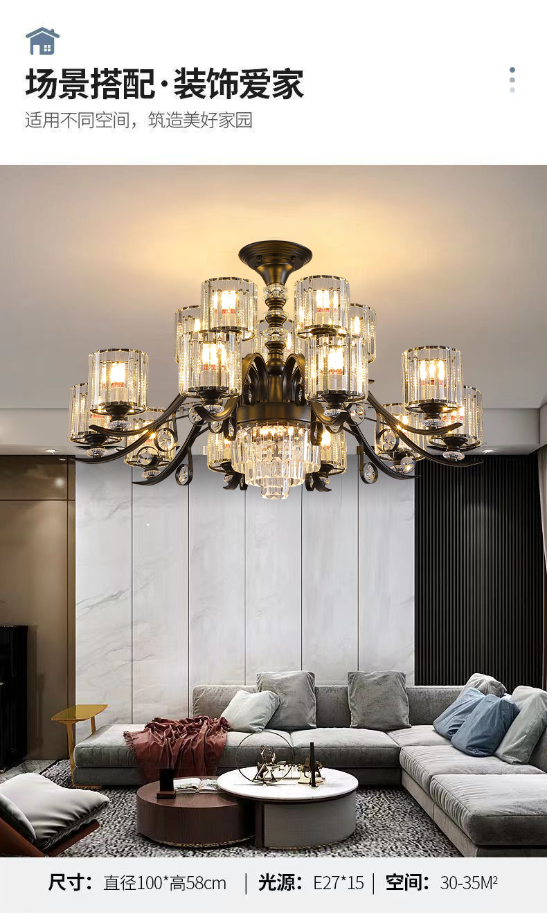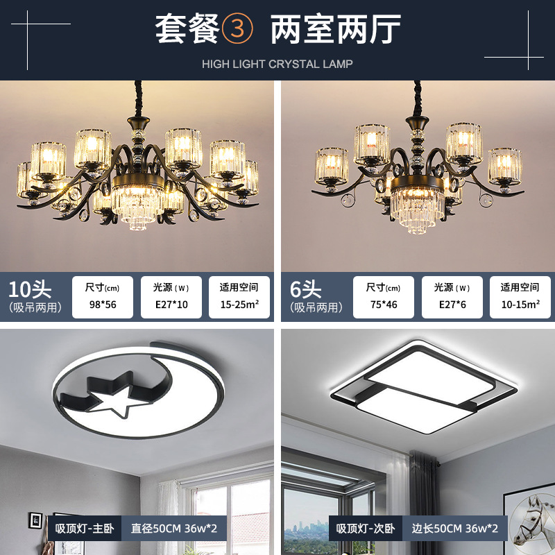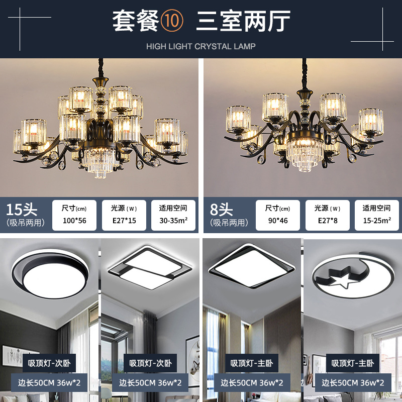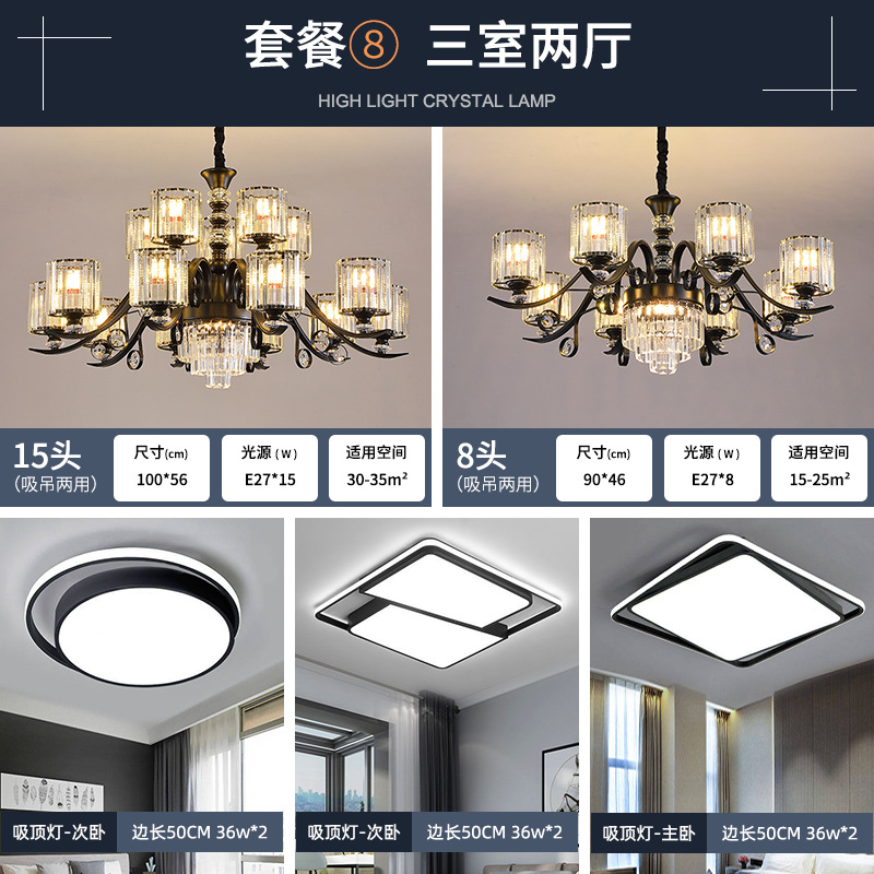 중산 램프 거실 램프 LED 빛 고급 크리스탈 샹들리에 북유럽 간단한 현대 천장 램프 식당 침실 집