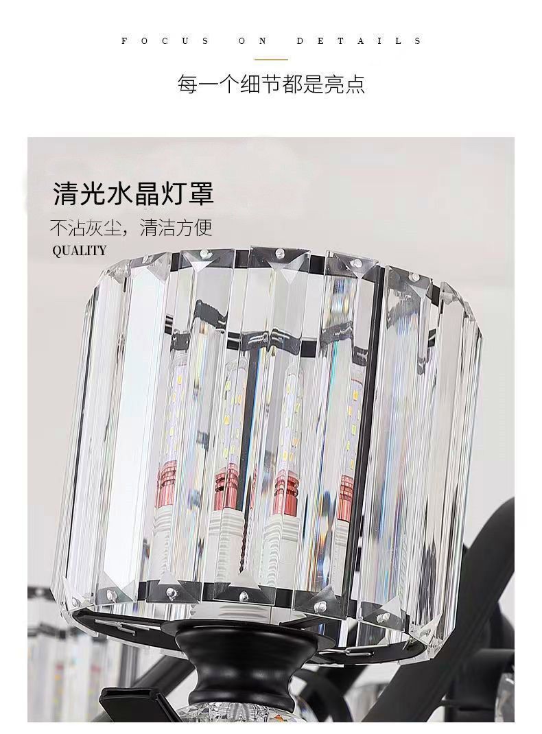 • 6헤드 크리스탈 샹들리에 - 12와트 3색 전구 + 리모콘으로 배송됩니다.
