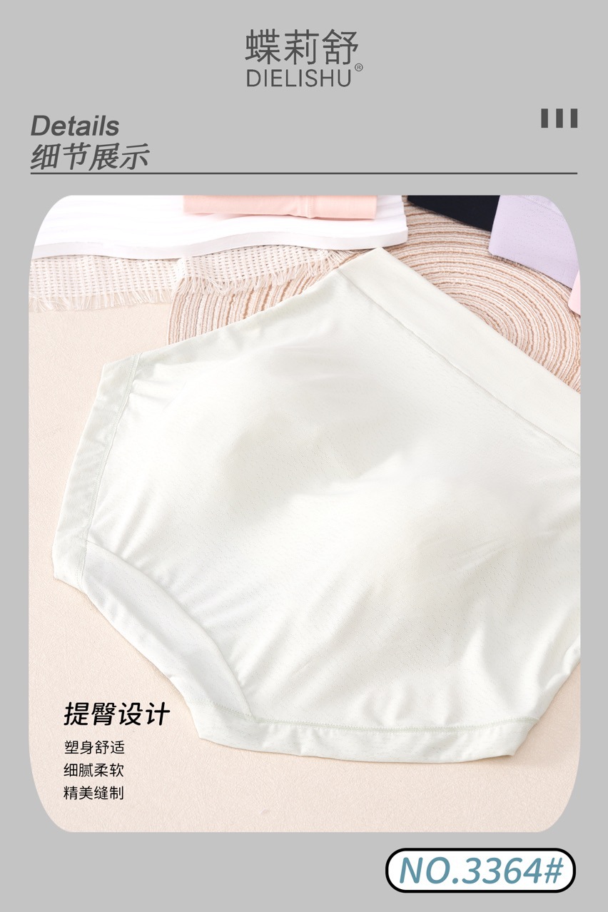 새로운 나비 Li Shu 3364 아이스 실크 속옷 여성용 가랑이 항균 통기성 하이 허리 엉덩이 여성 반바지 플러스 사이즈 통통녀