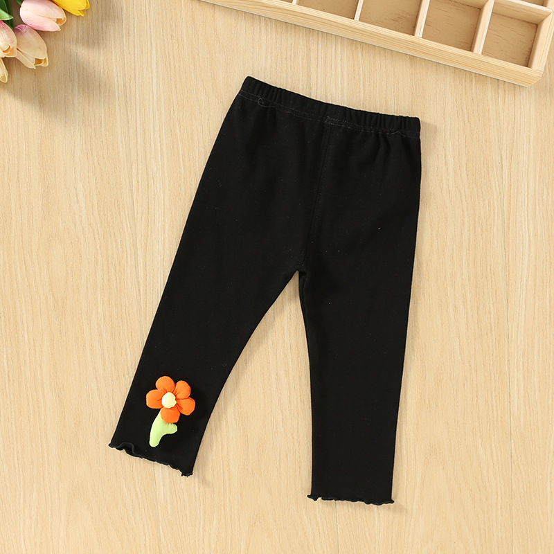• 순면 여성용 바지 : 입체적인 꽃무늬 블랙