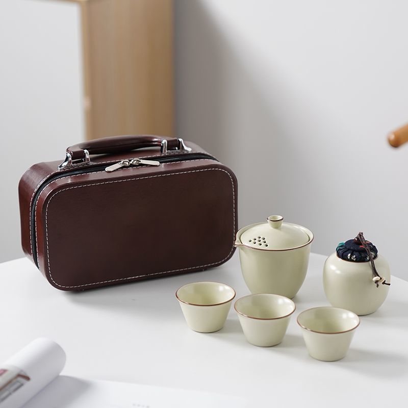 • 루야오 베이지 1냄비 3컵 + 차캔 [갈색 가죽가방]