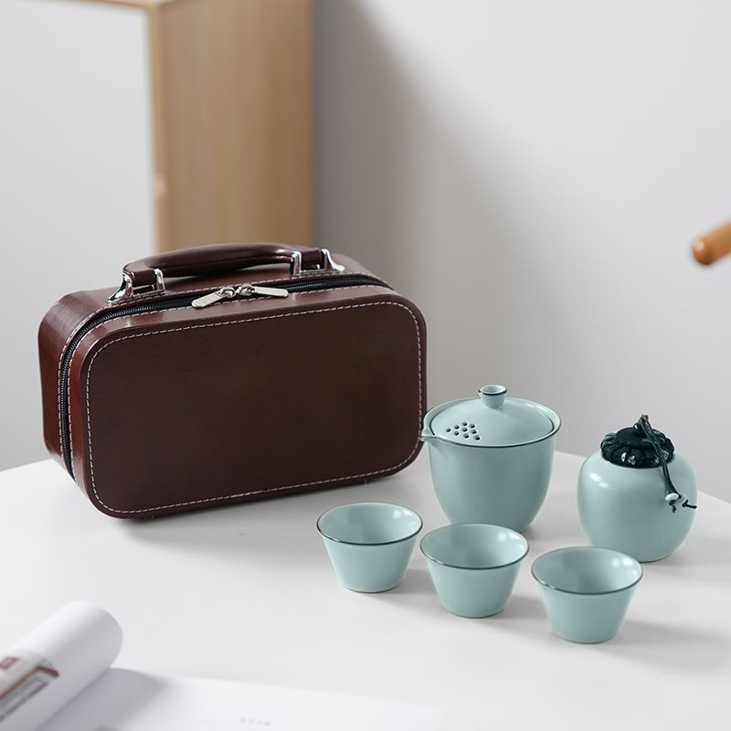 • 루야오 스카이블루 1냄비 3컵 + 차캔 [갈색 가죽가방]