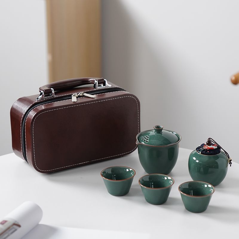 • 게야오 다크그린 1냄비 3컵 + 차캔 [갈색 가죽가방]