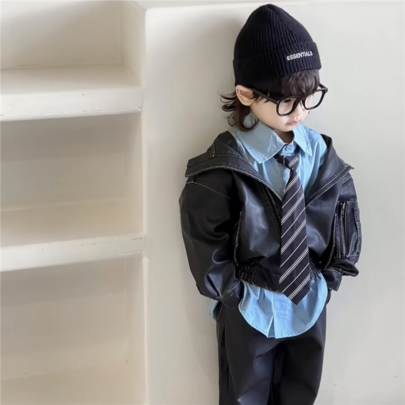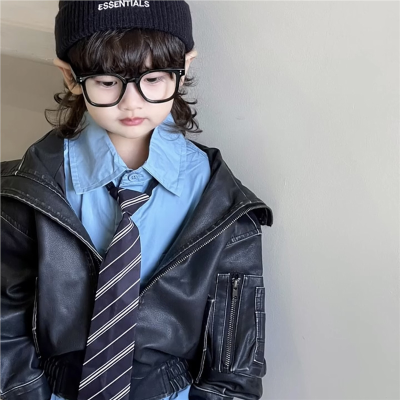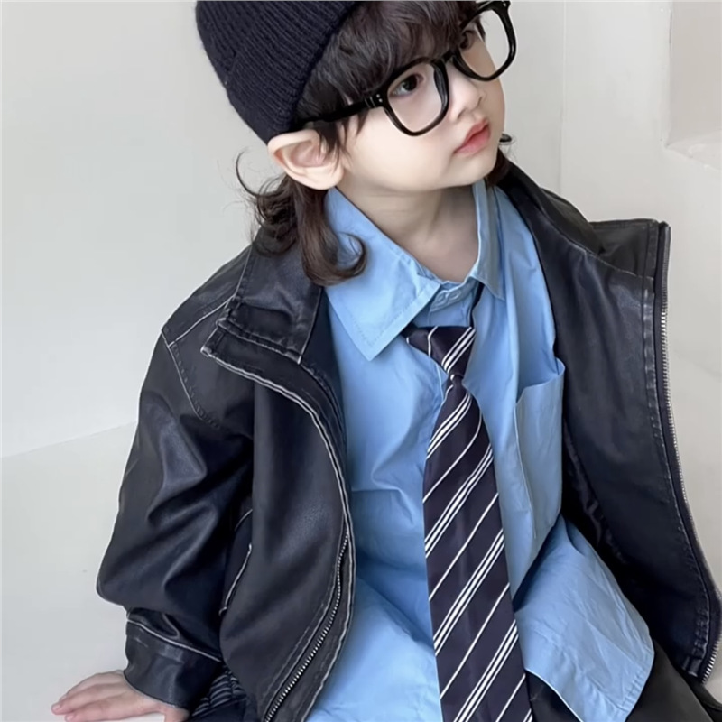 봄과 여름 2025 새로운 소년 넥타이 셔츠 한국 아동복 어린이 블루 셔츠 아기 소년 서양식 탑스토어 가기