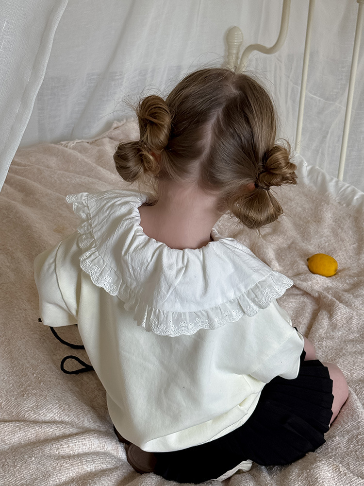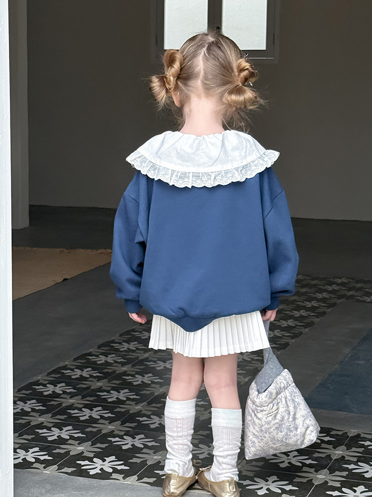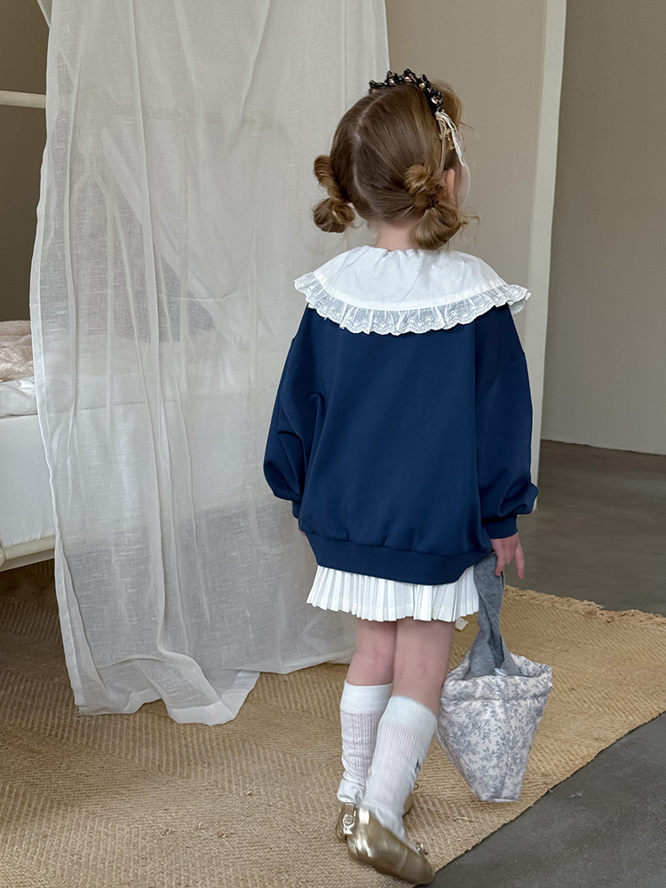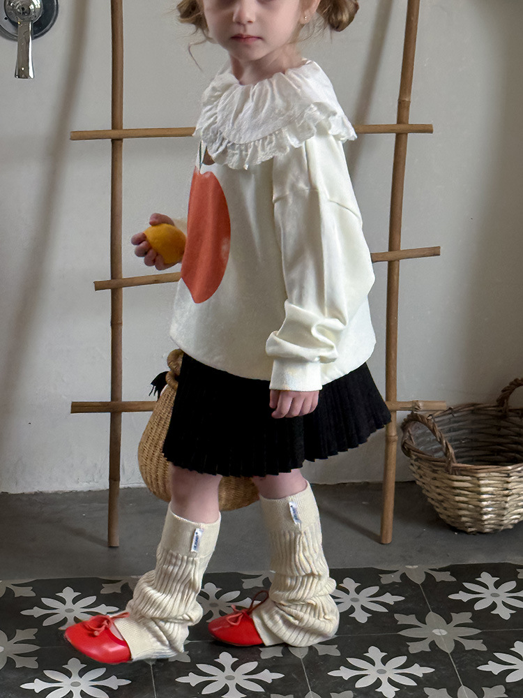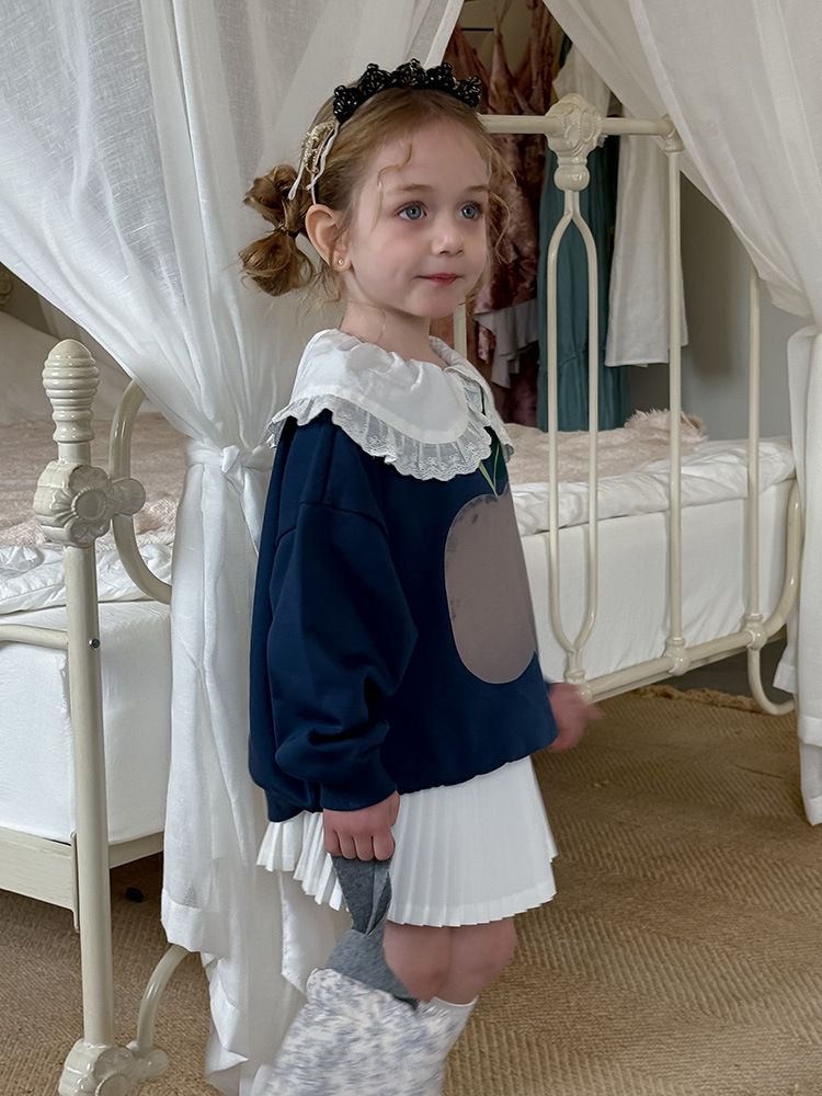 여아용 애플 카라 스웨트셔츠 2025 봄 가을 신상 한국판 아동 만화 프린트 레이스 카라 긴팔 스웨트셔츠