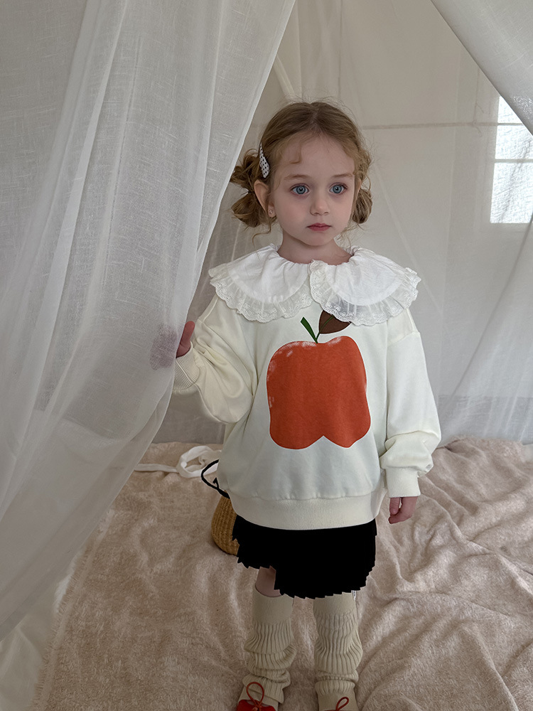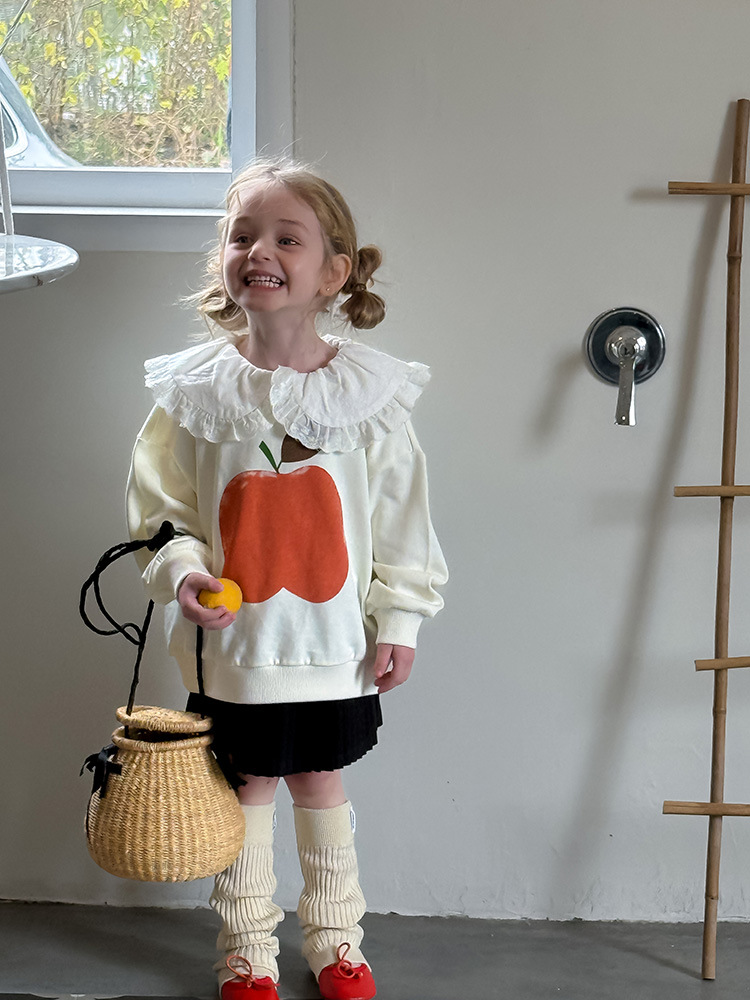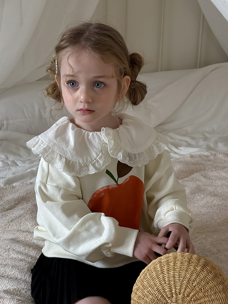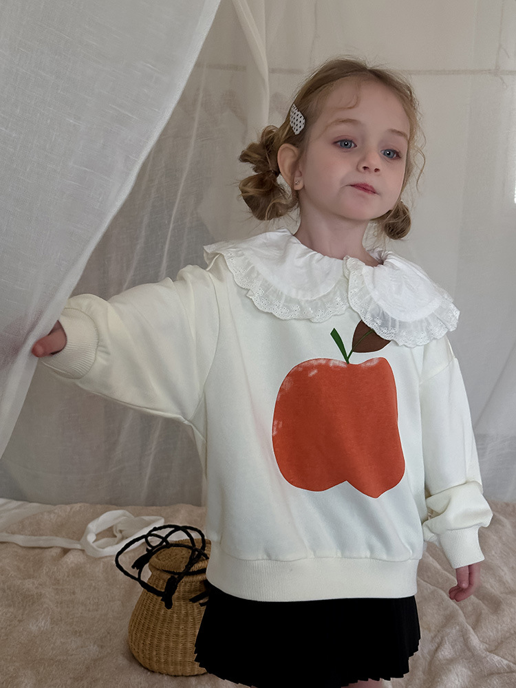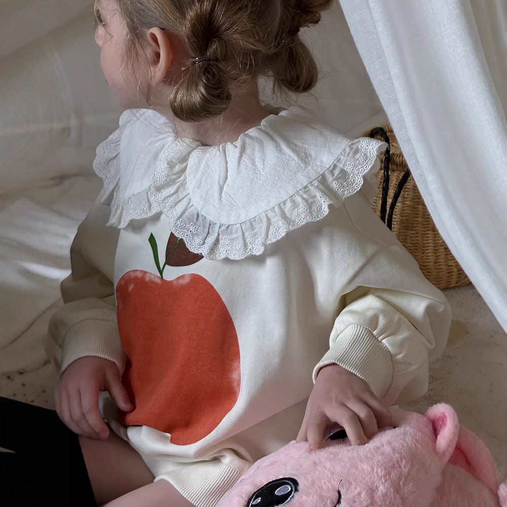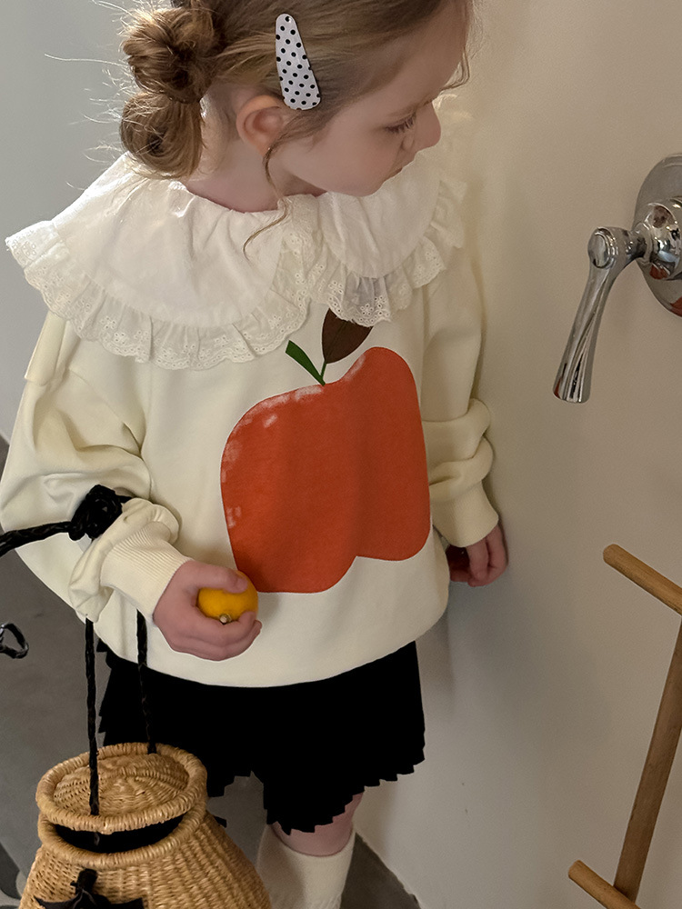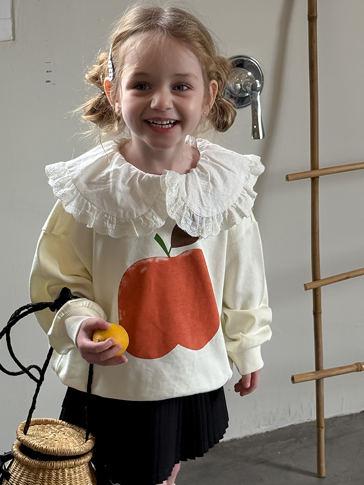 여아용 애플 카라 스웨트셔츠 2025 봄 가을 신상 한국판 아동 만화 프린트 레이스 카라 긴팔 스웨트셔츠스토어 가기