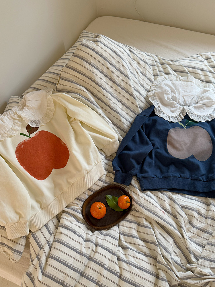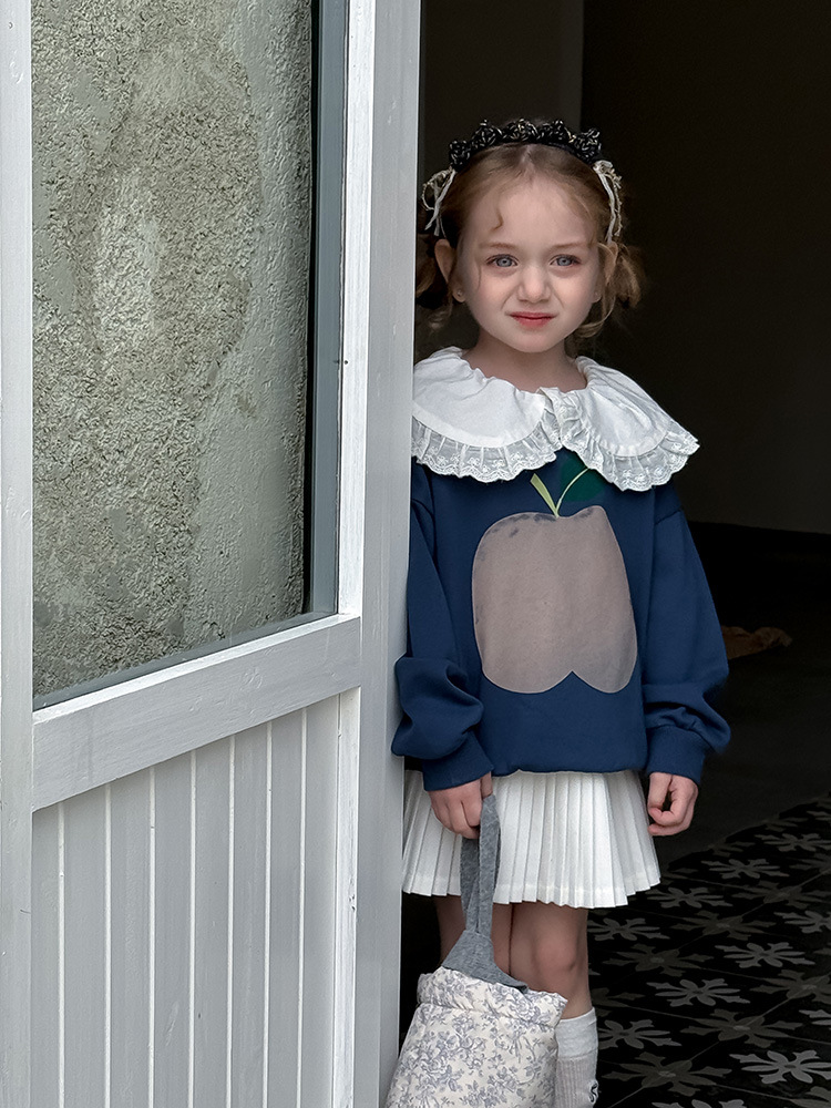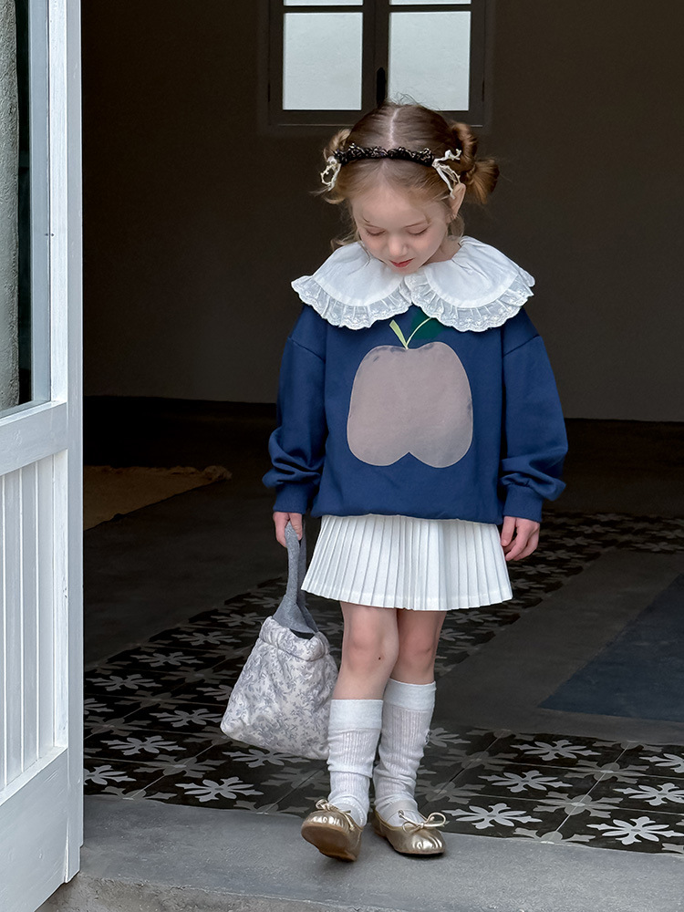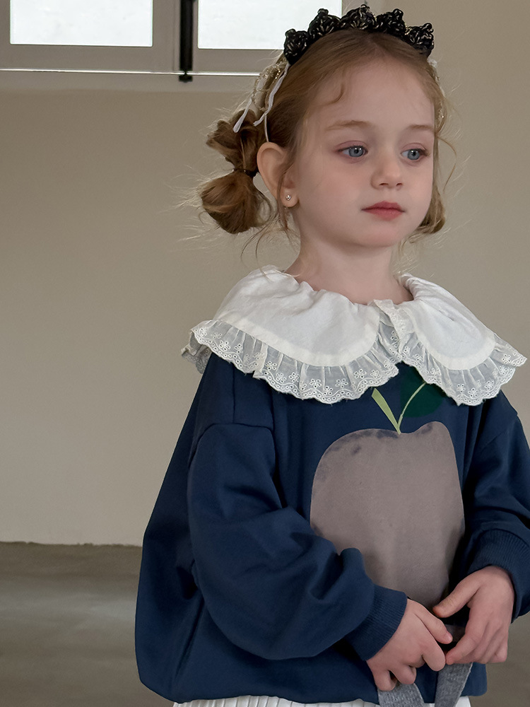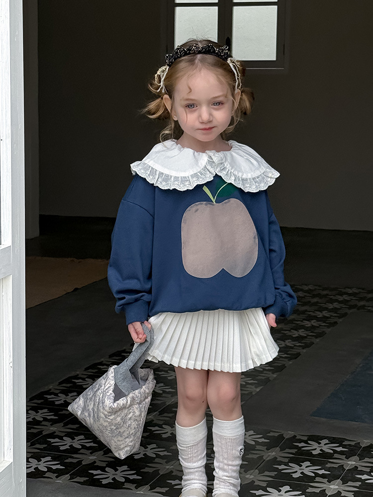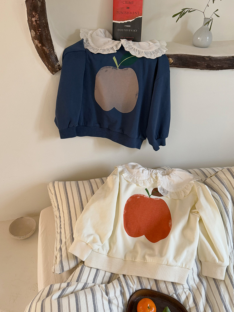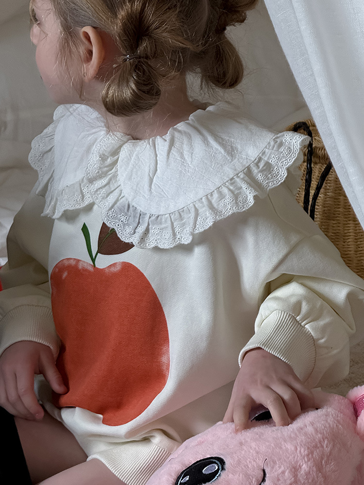 여아용 애플 카라 스웨트셔츠 2025 봄 가을 신상 한국판 아동 만화 프린트 레이스 카라 긴팔 스웨트셔츠스토어 가기