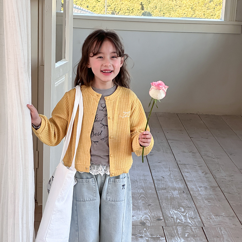 이모 베이베이 소녀의 달콤한 활 카디건 재킷 어린이 한국 스타일 소프트 왁스 캐주얼 핏 스트립 카디건 탑 봄