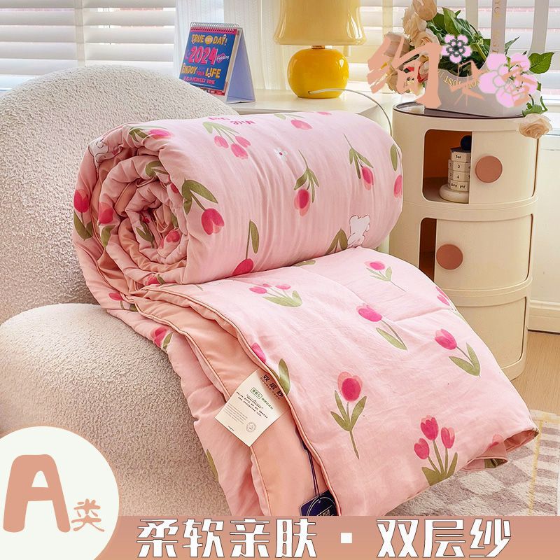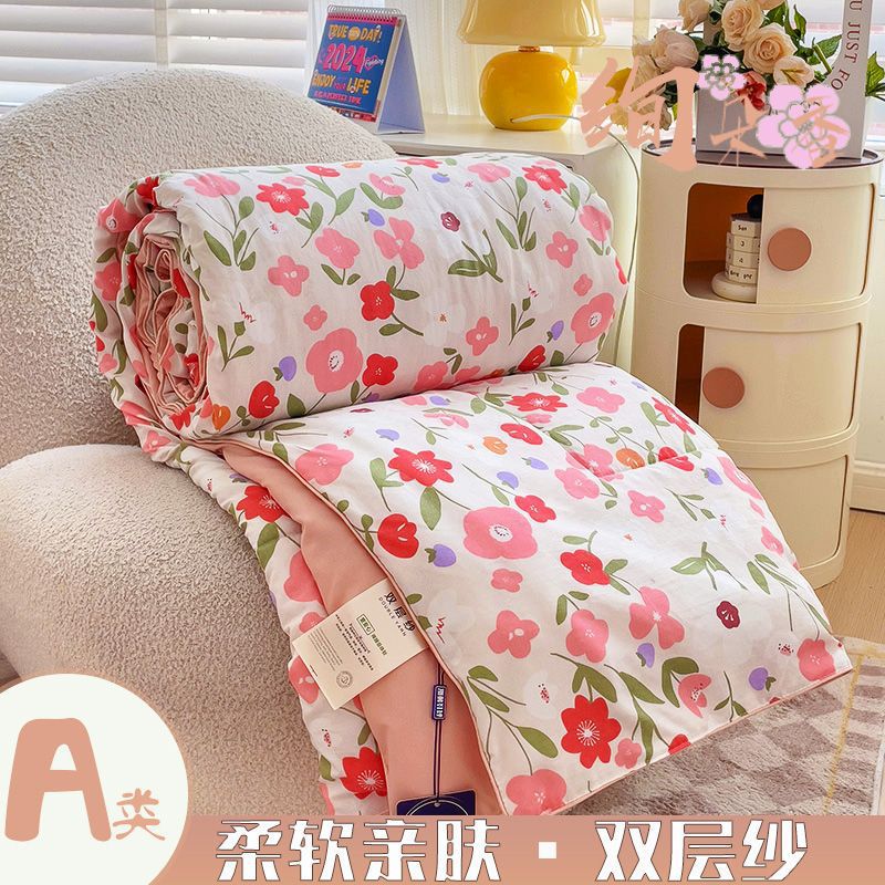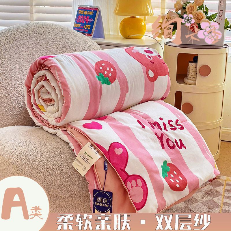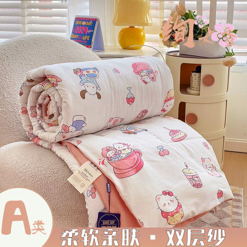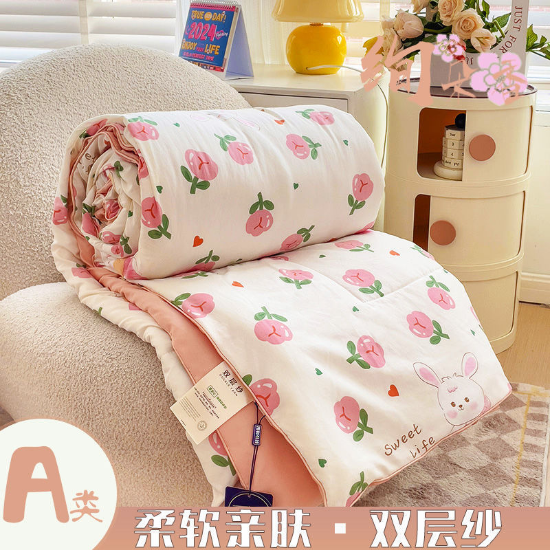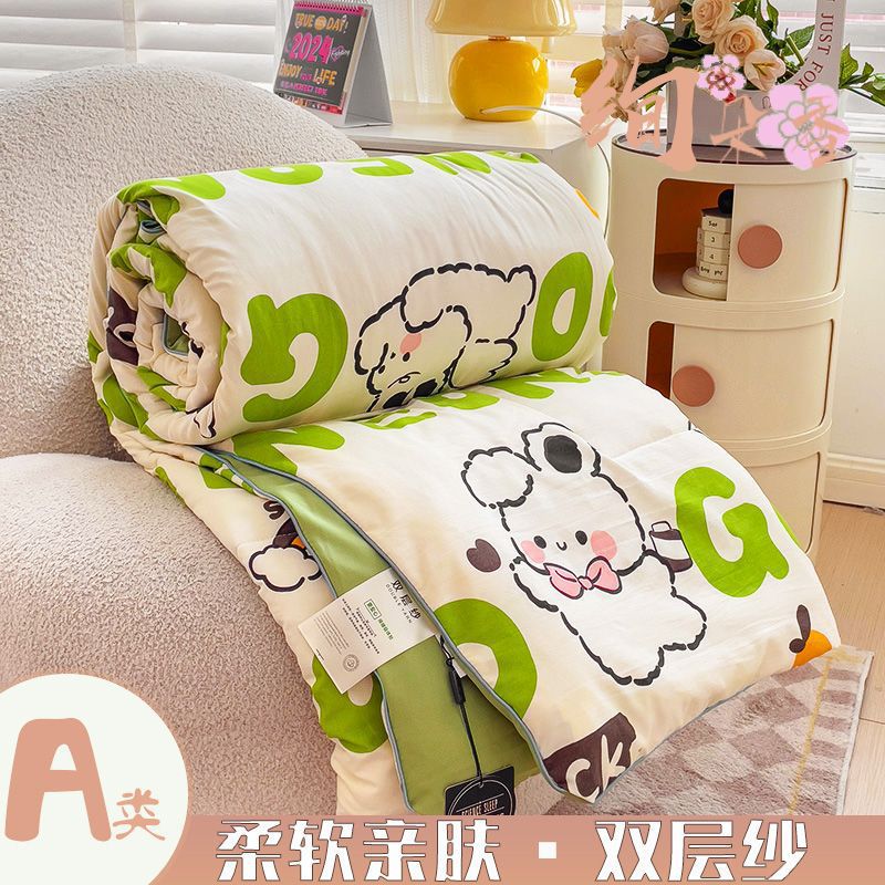 클래스 A 더블 레이어 원사 여름 이불 여름 3 피스 빨 수있는 싱글 더블 학생 기숙사 콩 섬유 에어컨 이불