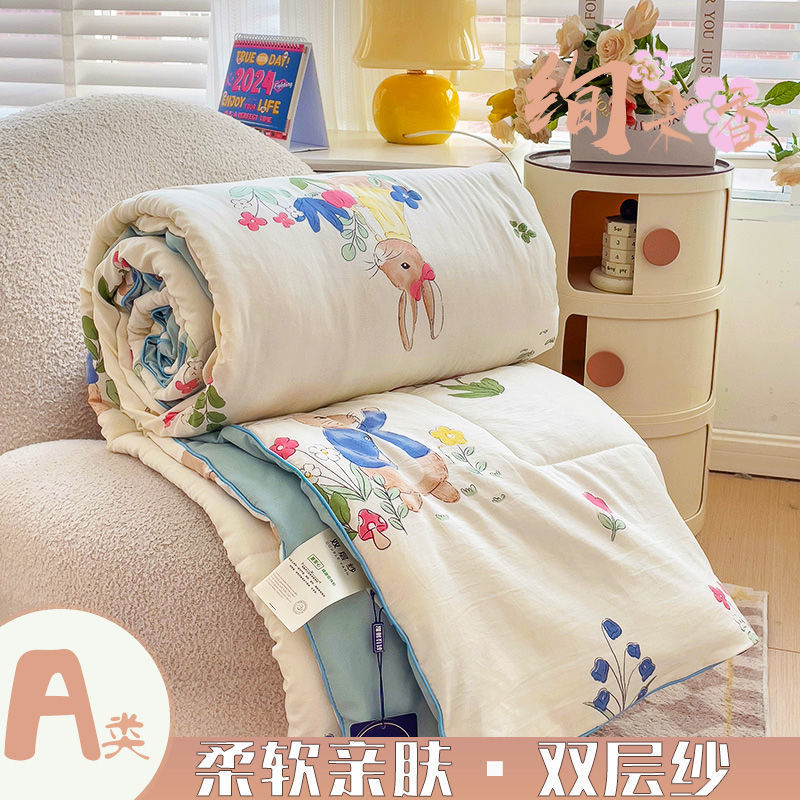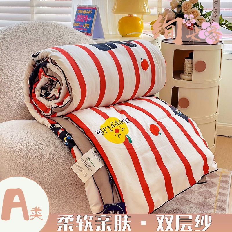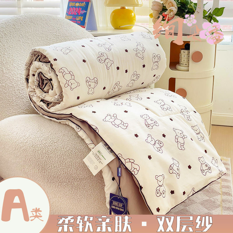 클래스 A 더블 레이어 원사 여름 이불 여름 3 피스 빨 수있는 싱글 더블 학생 기숙사 콩 섬유 에어컨 이불스토어 가기